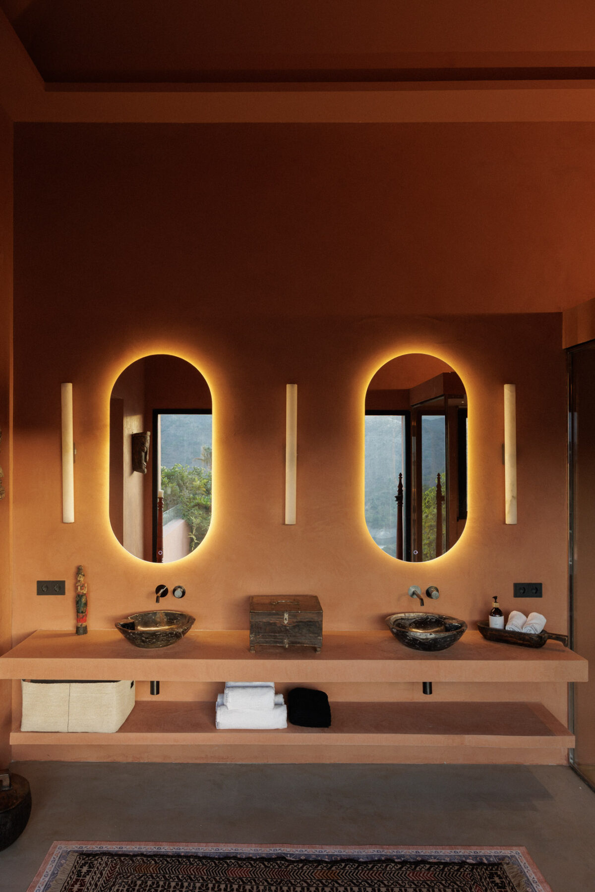 What I love most about this house is how much personality it has. The owner has clearly reimagined the space with real creativity and care. It never feels sterile or overly polished. Instead, there are beautiful pieces gathered from around the world, statement artwork and thoughtful details everywhere you look. The lower ground lounge with its enchanted forest feel is wonderfully atmospheric, while the soft sensor lighting creates a warm glow in the evenings that makes the whole villa feel calm and inviting.