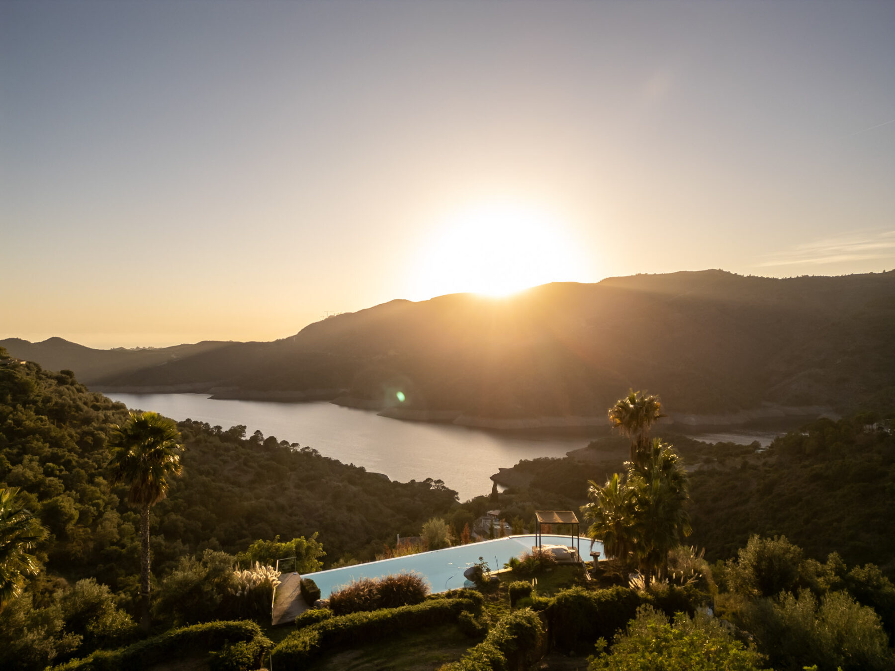 Villa Kalani is located close to Marbella overlooking Lake Istan, surrounded by forested slopes and mountain landscapes. This peaceful setting offers exceptional privacy and a strong connection to nature, while Marbella’s Golden Mile, Puerto Banus, restaurants and beach clubs remain within easy reach just over 10 minutes away by car. The nearby white village of Istan is also just a short drive away, offering traditional cafés and restaurants alongside scenic hiking routes through the surrounding hills.