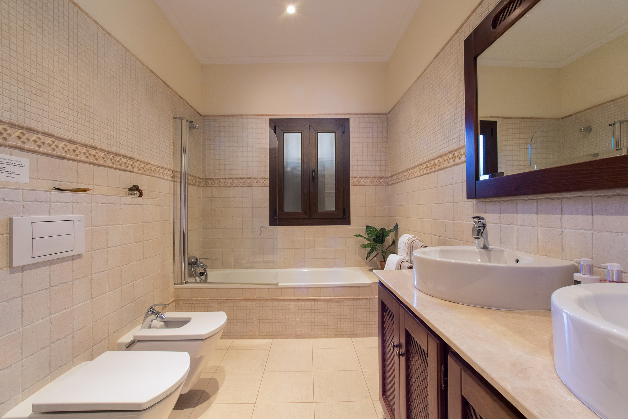 Additionally, inside the villa you’ll find a hot tub and well-equipped gym, with a treadmill, cross-trainer, multi-gym, and weights (also with IPTV). There is a community tennis court available for your use.