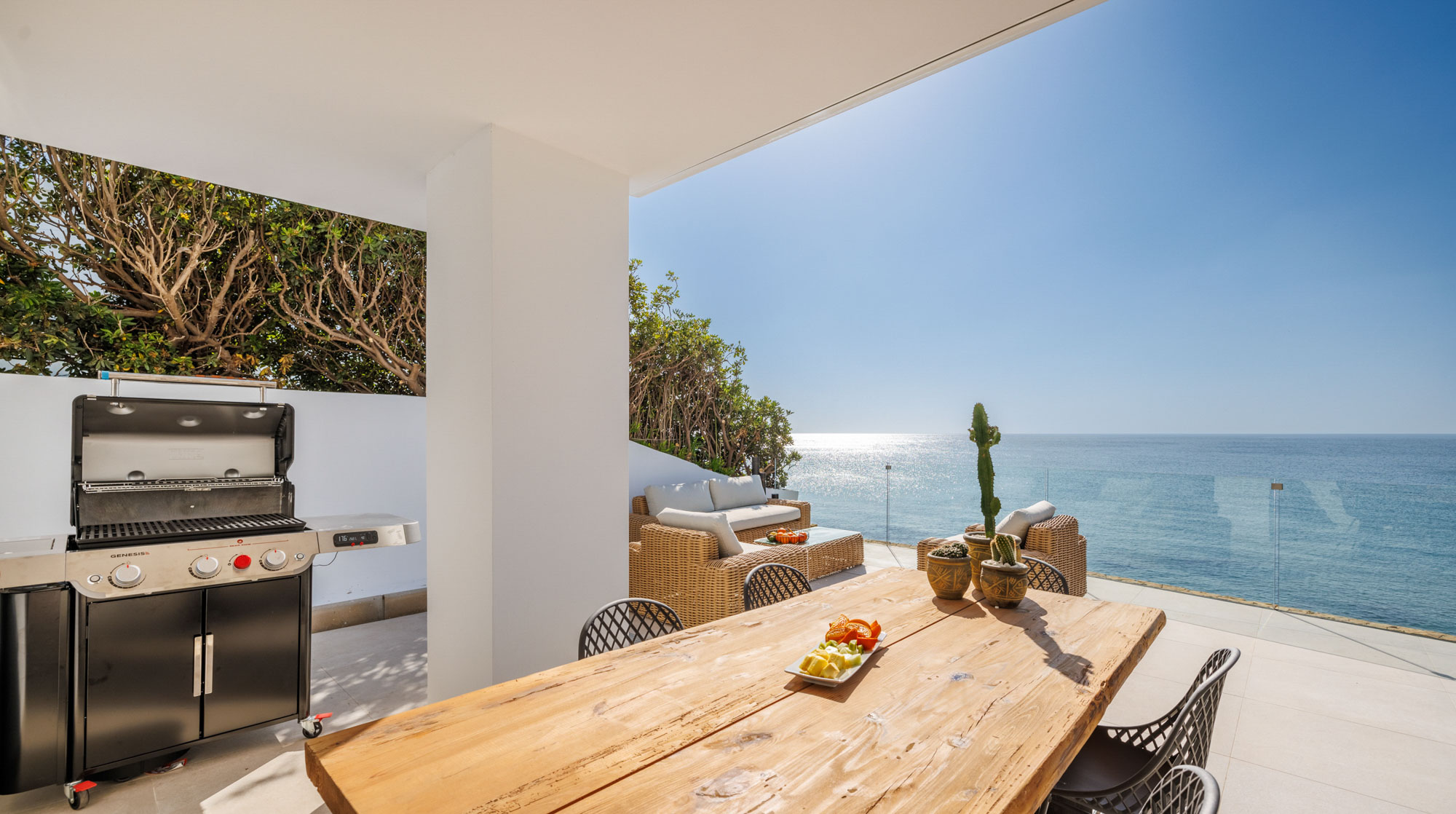 The terrace also features a Weber gas BBQ, perfect for evening grilling with the waves as your soundtrack.