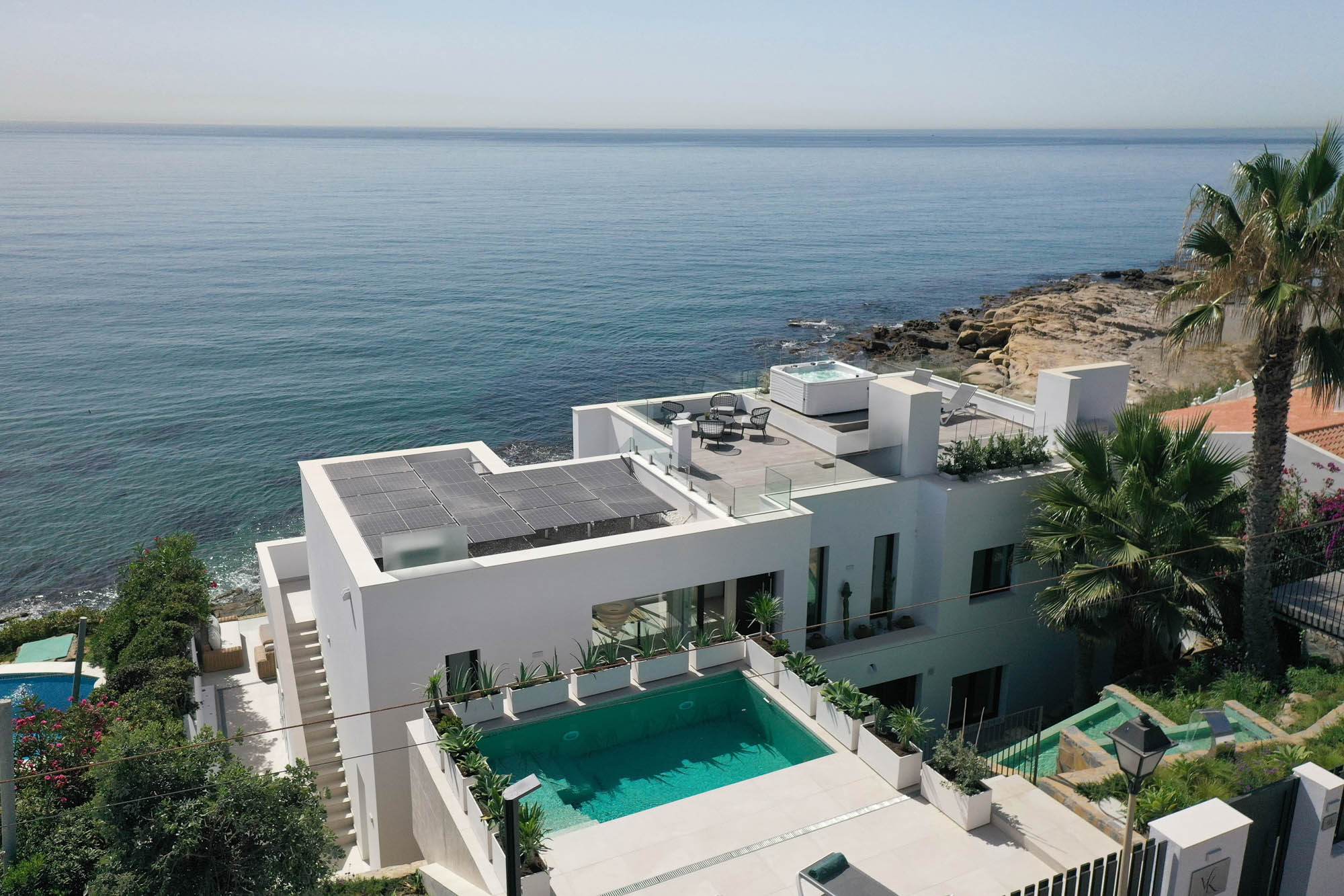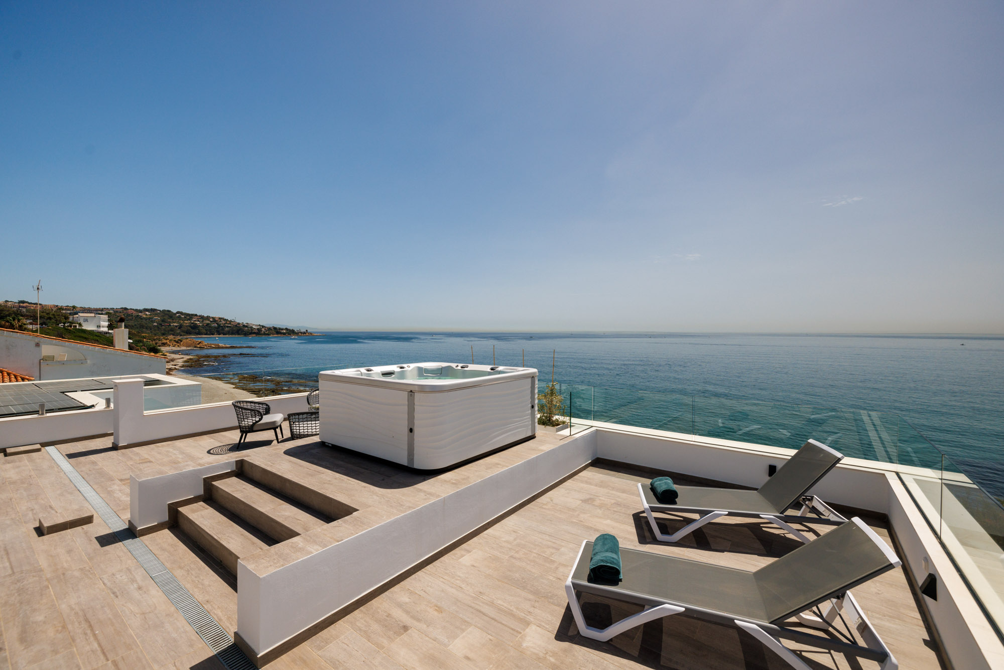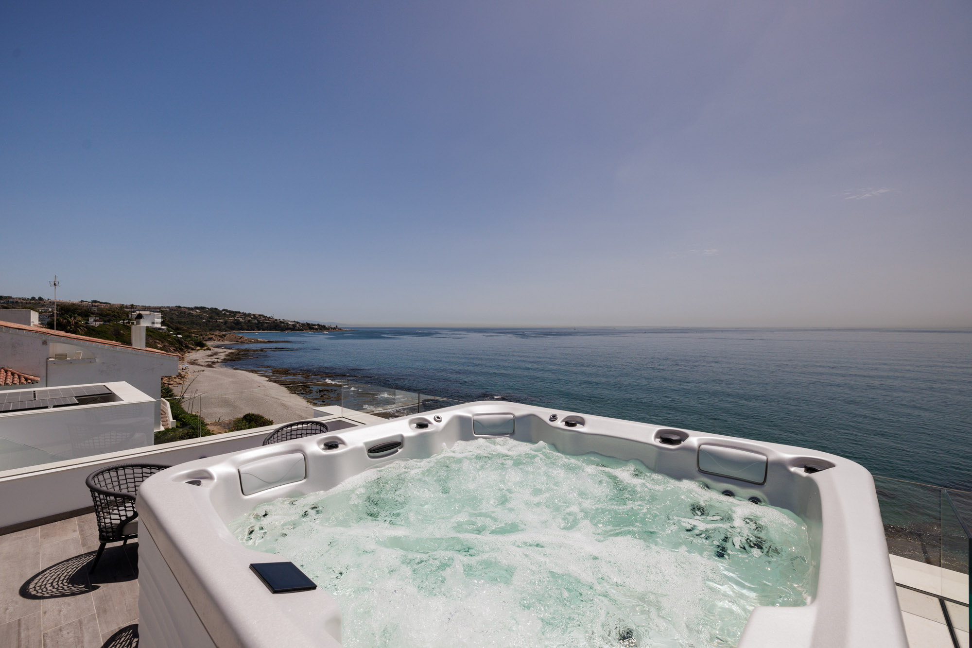 We really enjoyed our stay at Villa Kyssa. The villa was so sleek and modern. The sea views were superb and the hot tub on the roof was very well used. We regularly swam on the beach right in front of the villa, even though we were there in February!