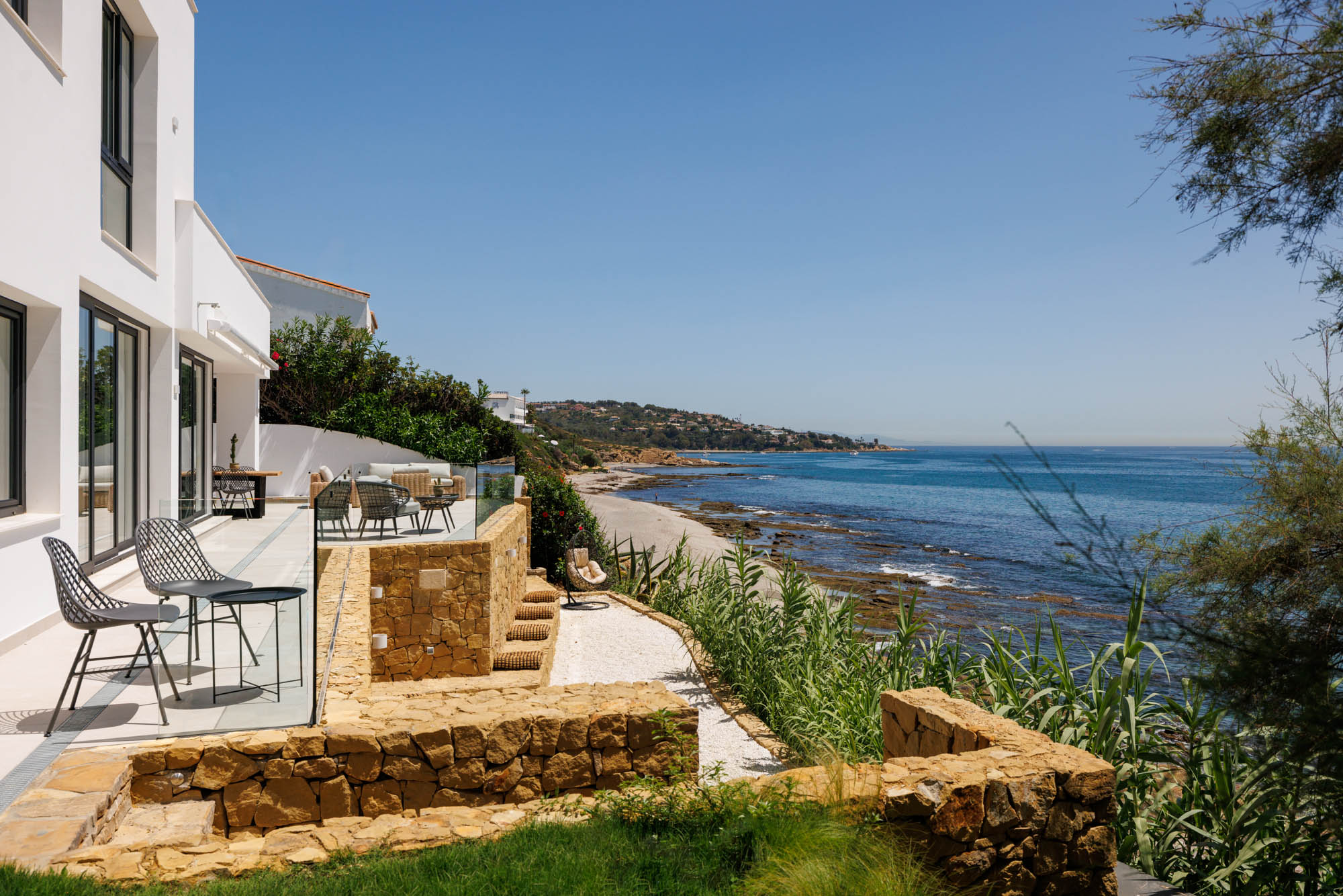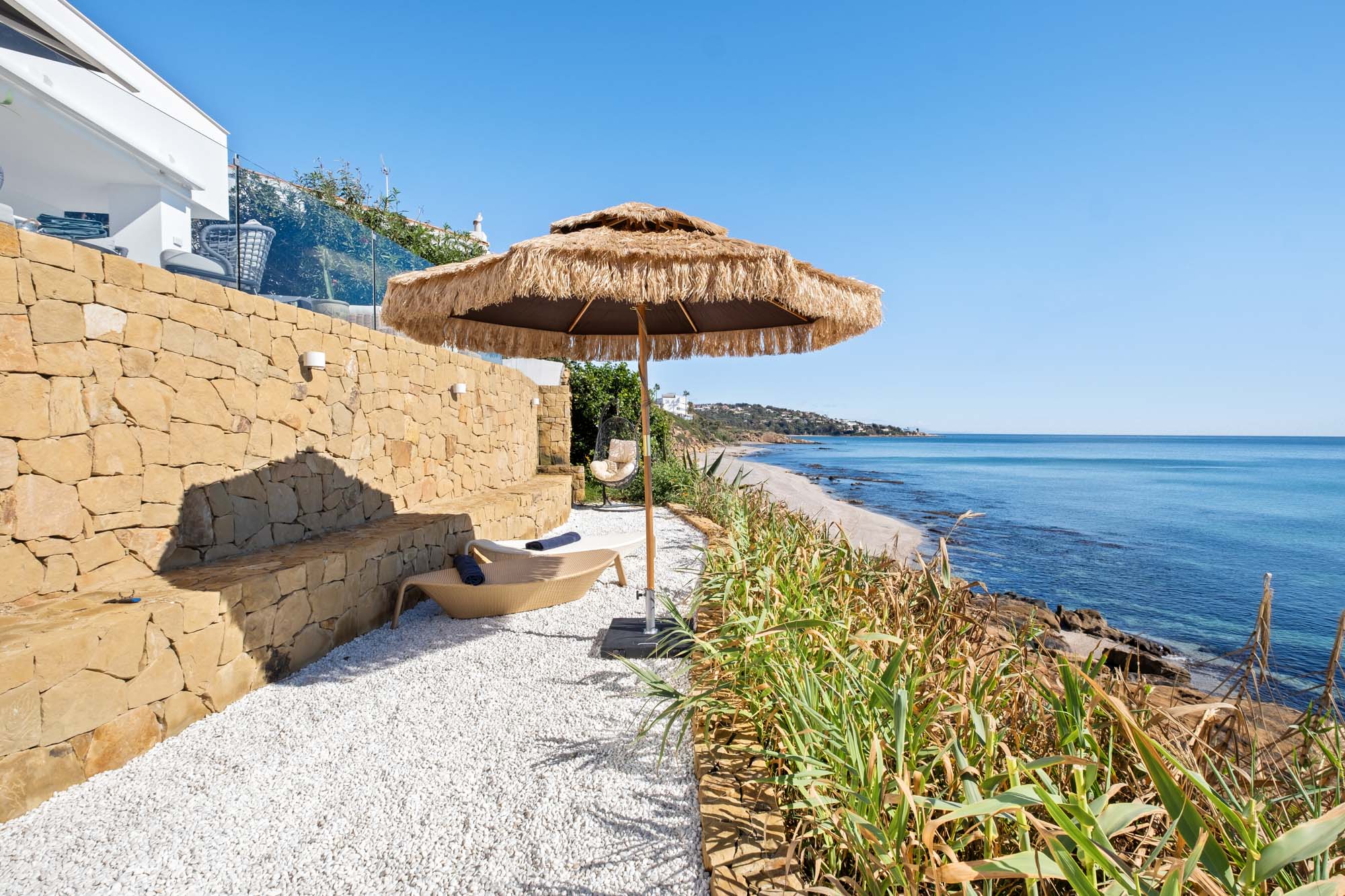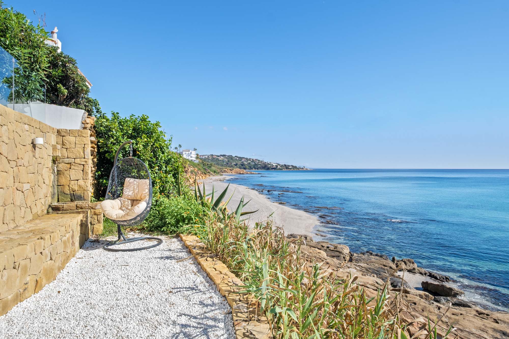 Just steps away from the sea, Villa Kyssa offers all the perks of beachside living, whether its morning swims, sunbathing on the rocks or picnics on the sand. With sea views on offer from almost every room and the constant soundtrack of breaking waves, there’s no better place from which to soak up the charm of Sotogrande.