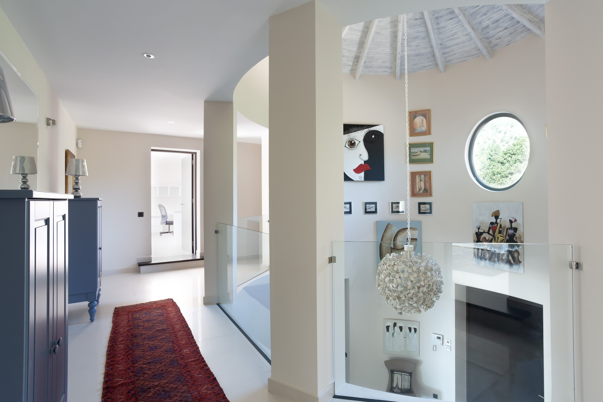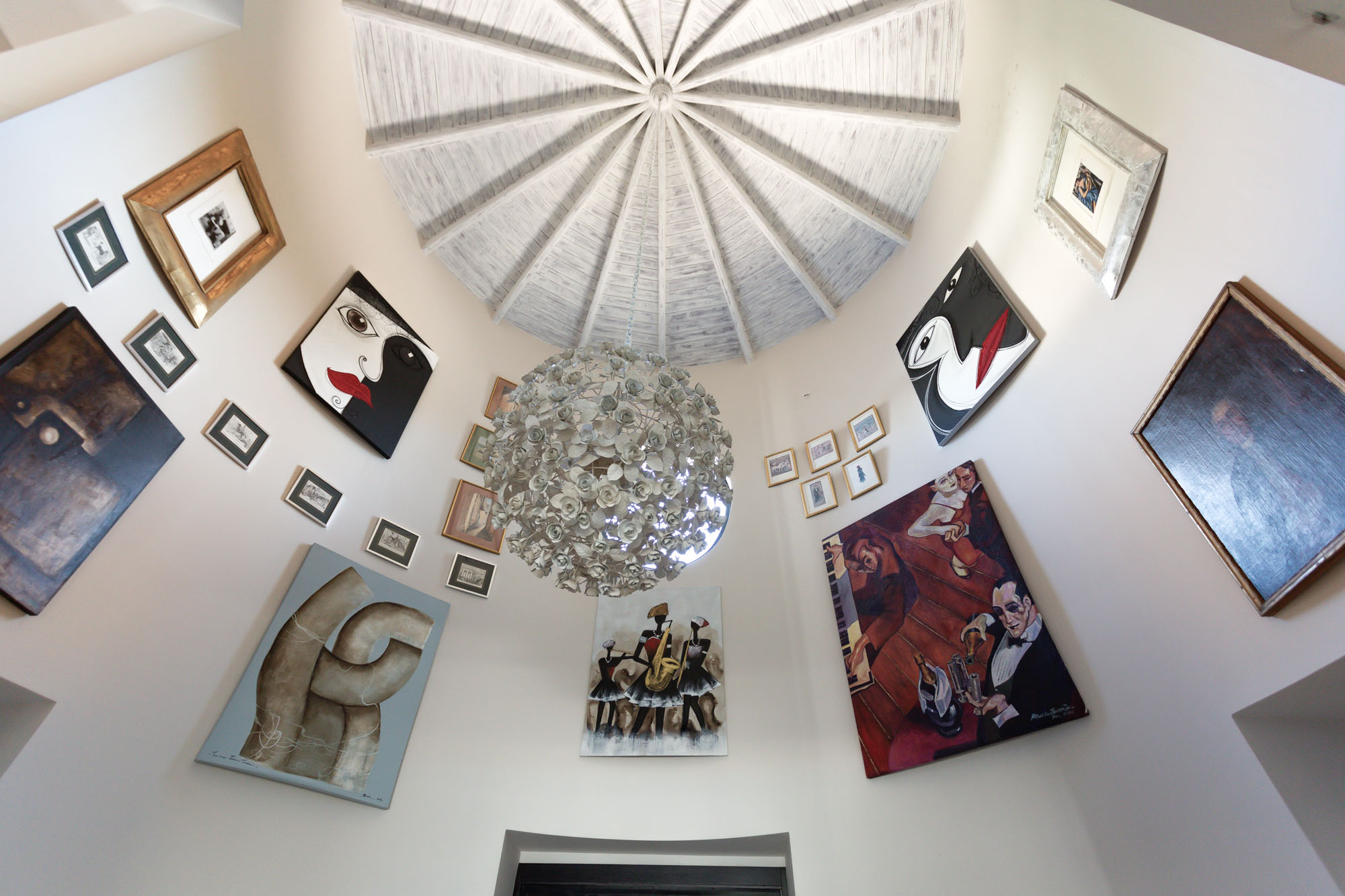 Open a door into another world – where a triple-height entrance forms a round tower, ablaze with the colours and textures of original paintings and sculpture.