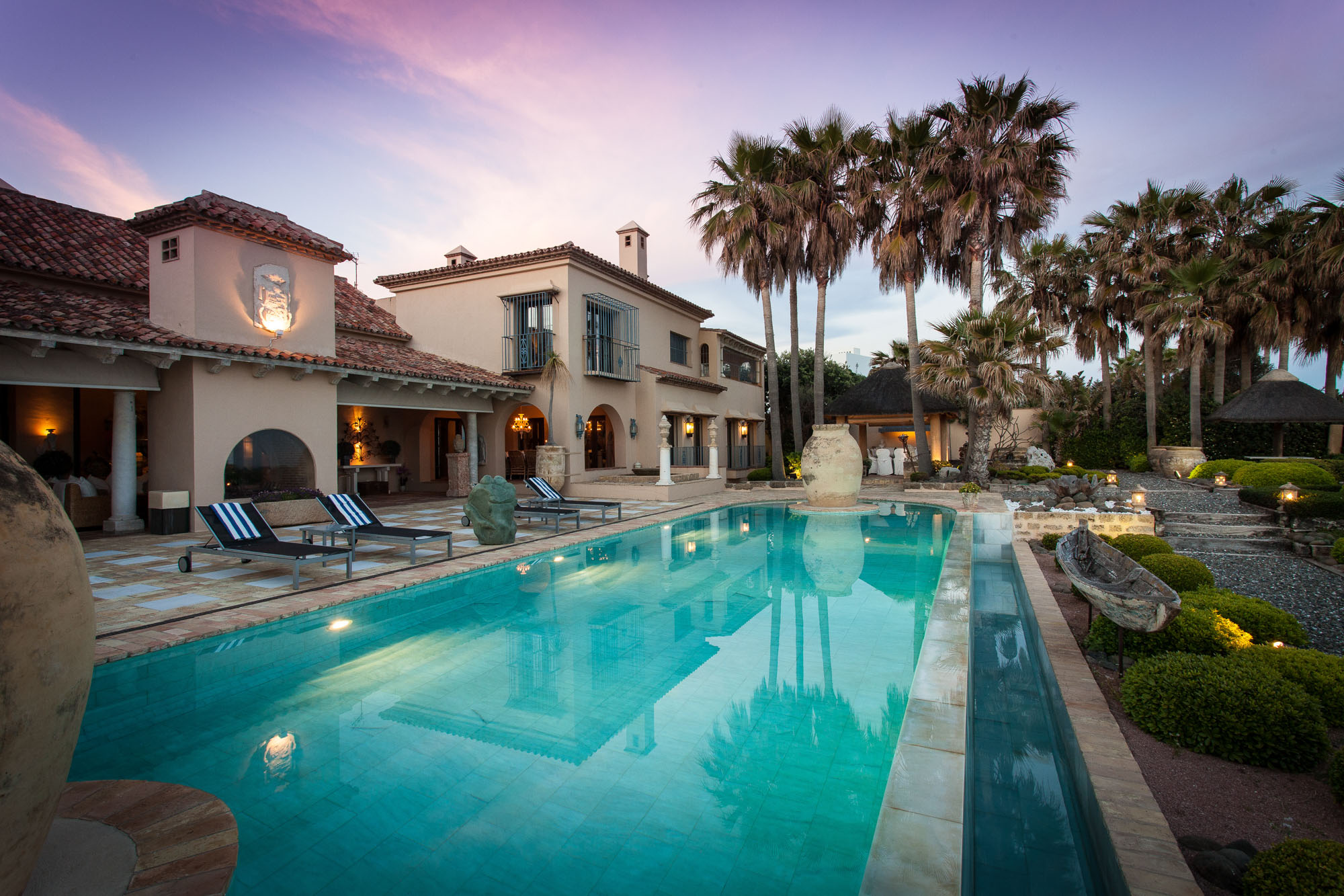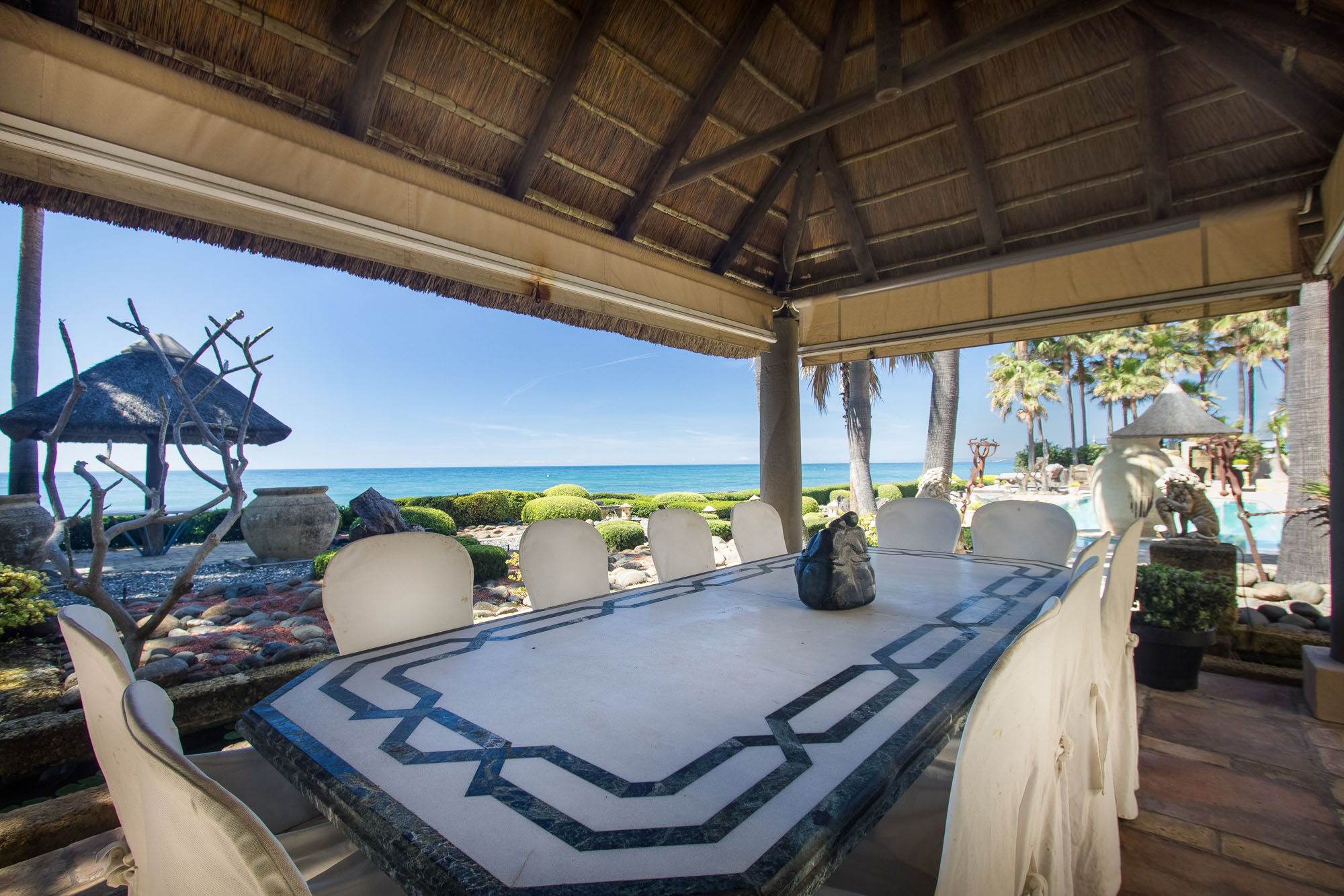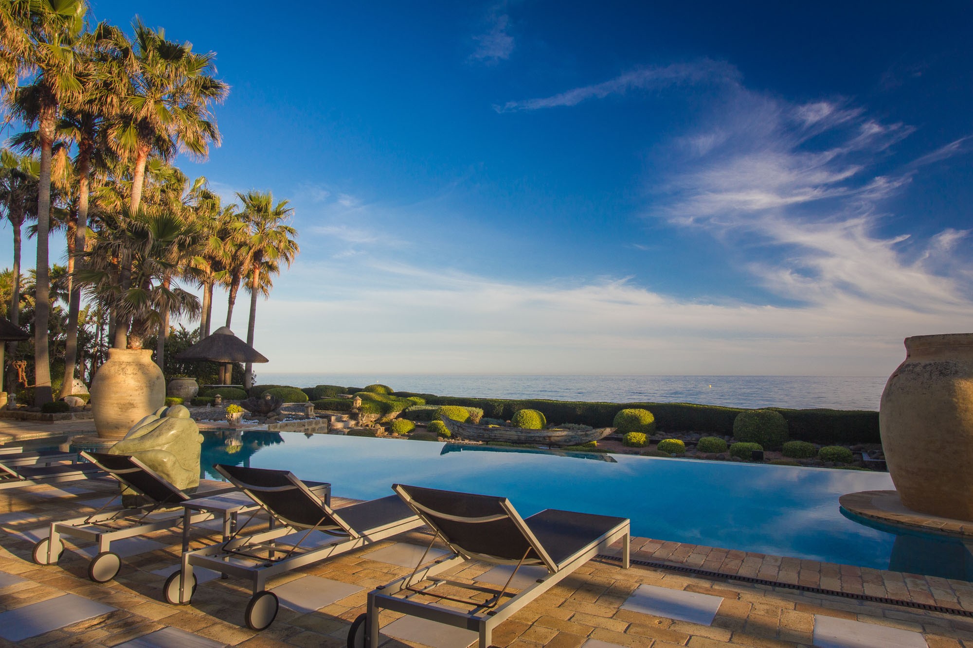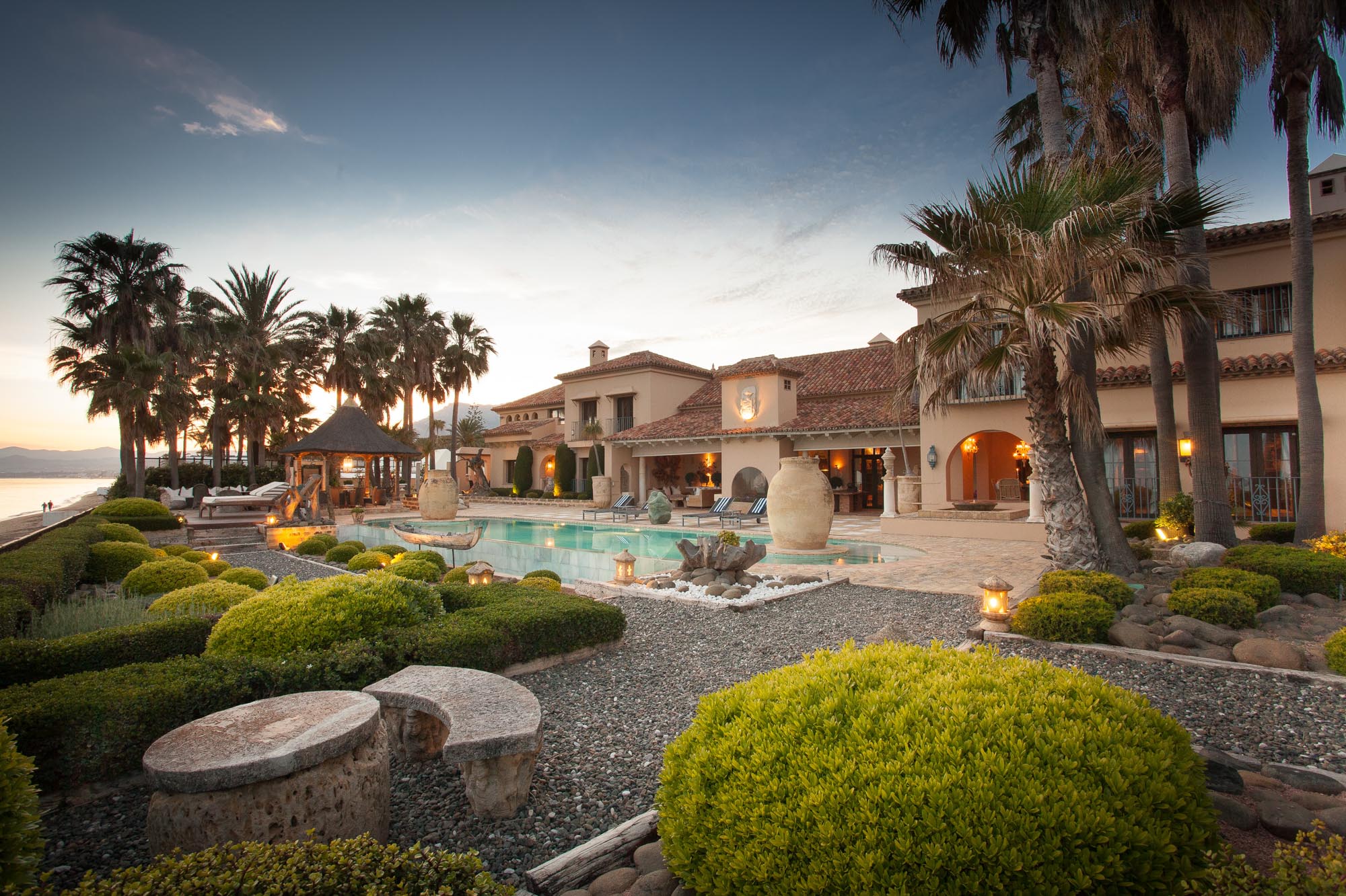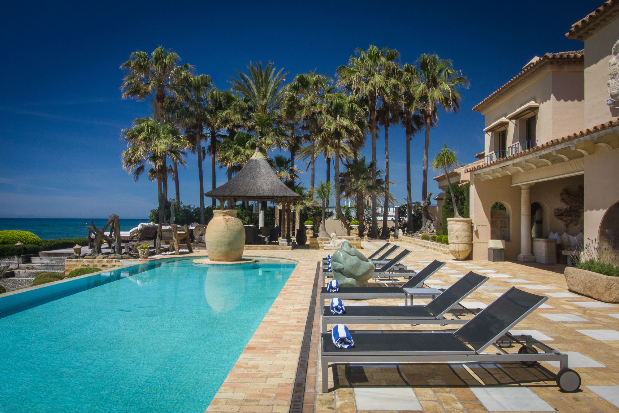 The owner transformed this beachside mansion into an exquisite Mediterranean villa of five-star Spanish style, with grand cathedral ceilings, stately stone fireplaces, and treasured art and antiques around every corner. This is a private luxury beachfront villa in Marbella that’s fit for royalty.