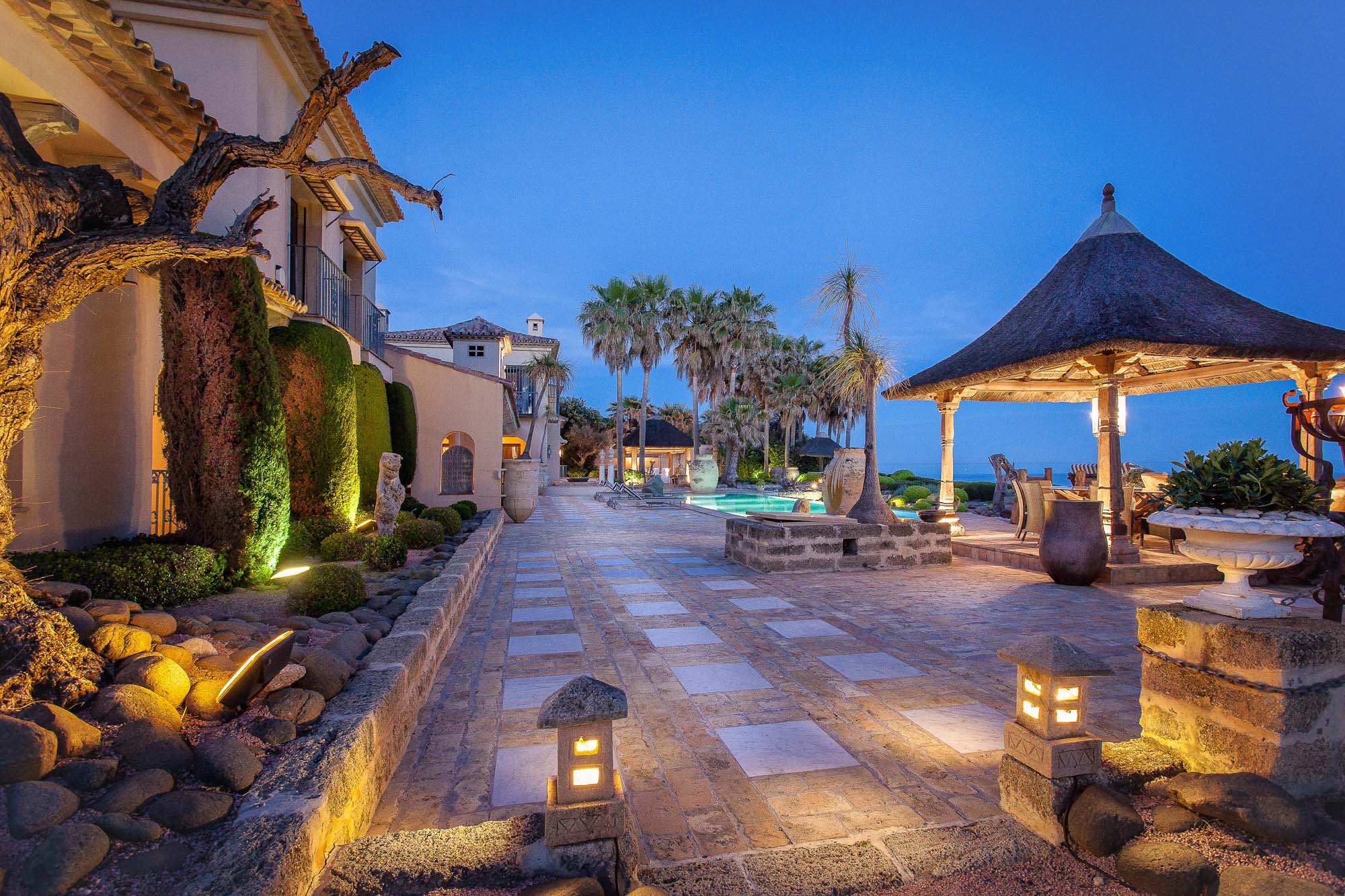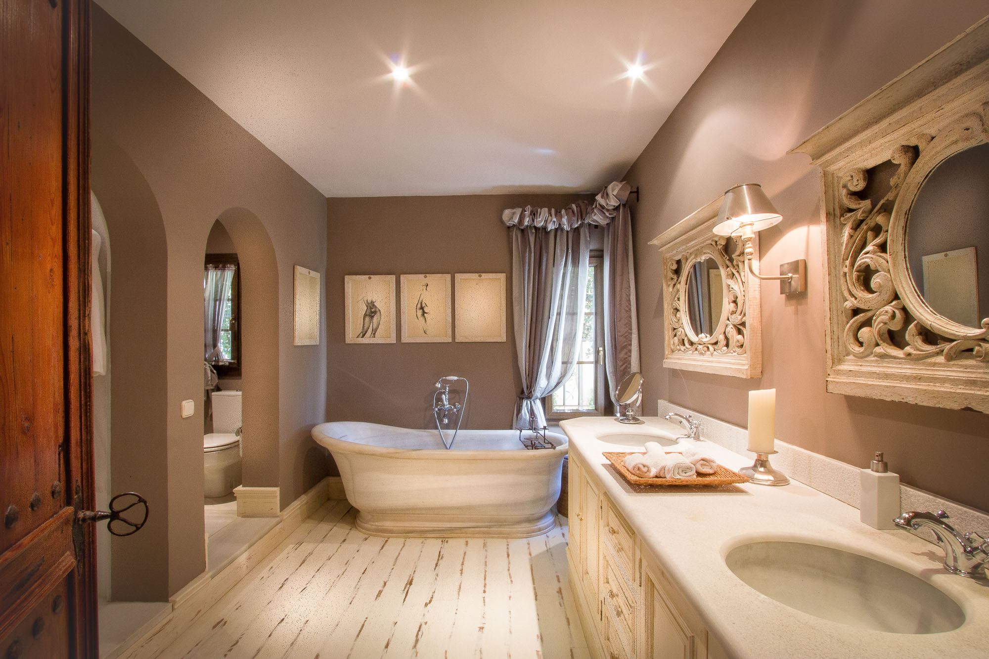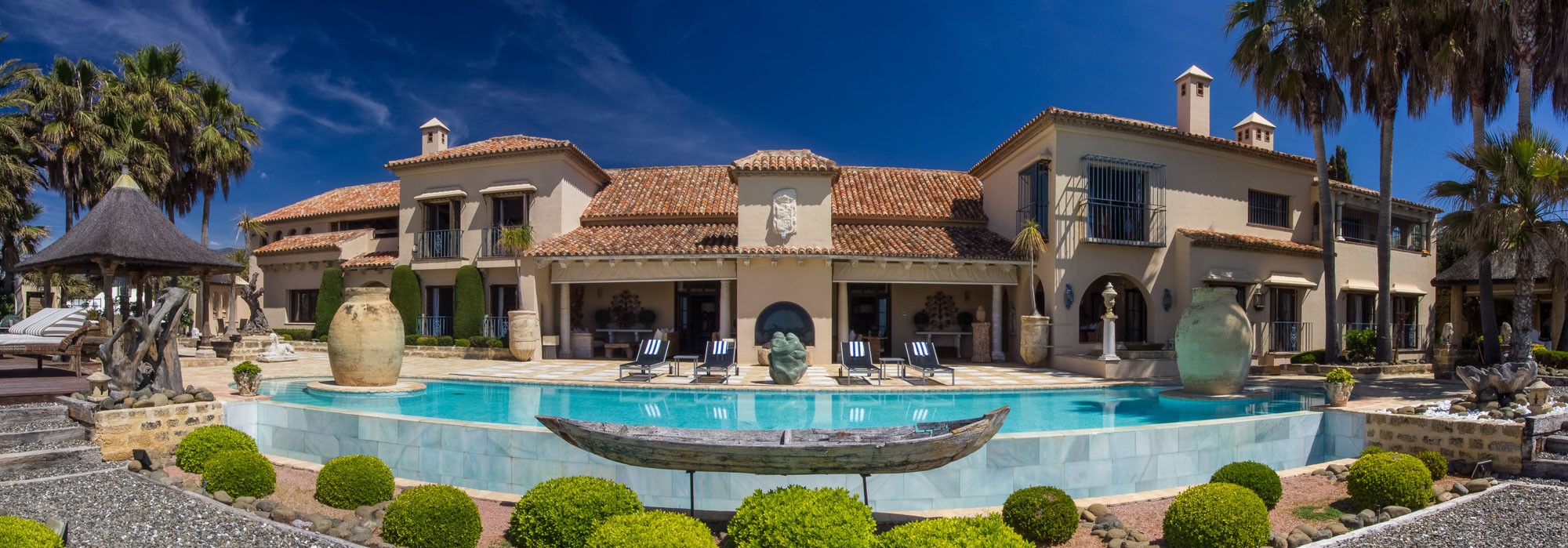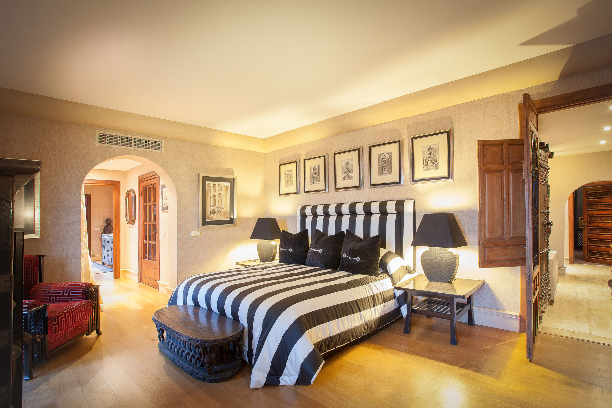 From the front entrance, with its Roman courtyard, burbling water features and 400-year-old olive trees that stand as sentries, it’s immediately clear that Villa Las Artes is a marriage of luxury, class and style. Even so, it’s impossible to imagine the lavishness that lies beyond the imposing, antique Spanish front door.