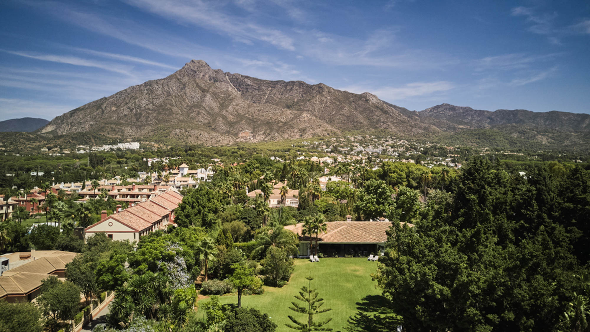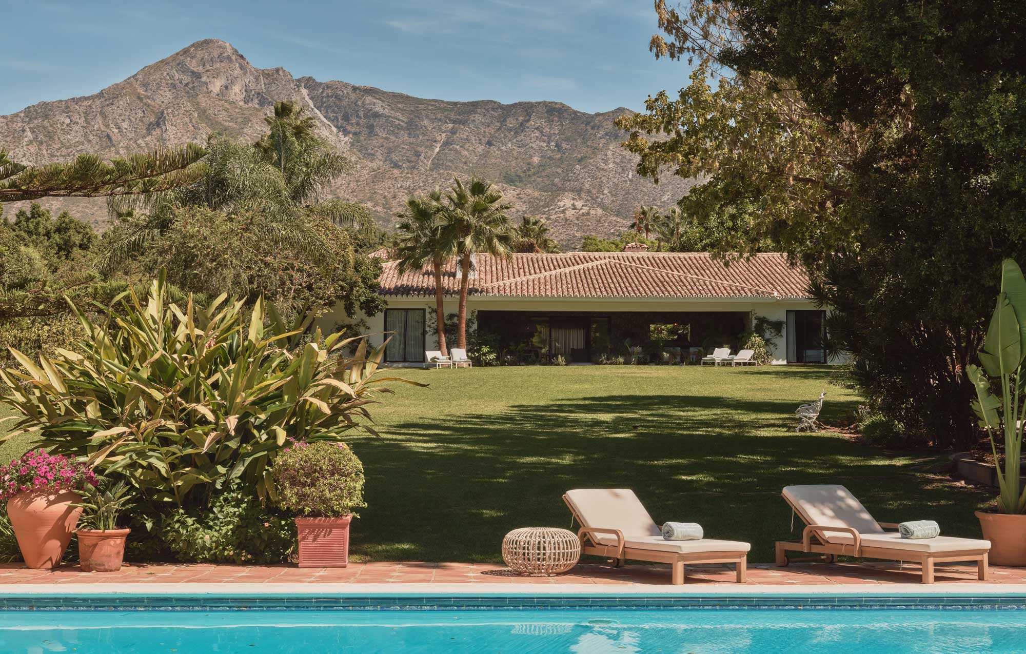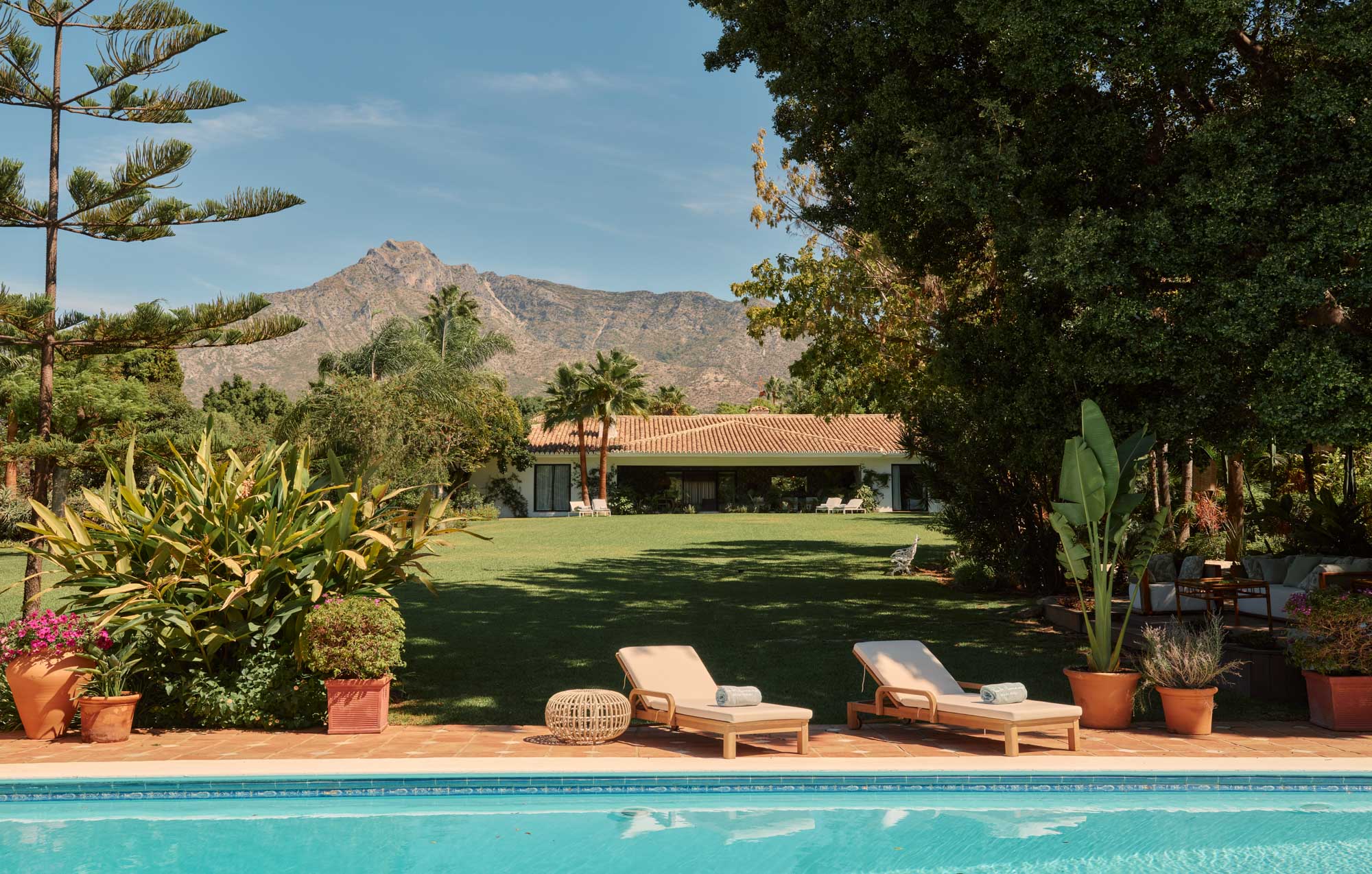 The lawn is a standout feature – open, level and perfectly positioned beneath La Concha. It’s equally suited to children playing freely as it is to a standing cocktail event at sunset, with the mountain views creating a memorable backdrop.