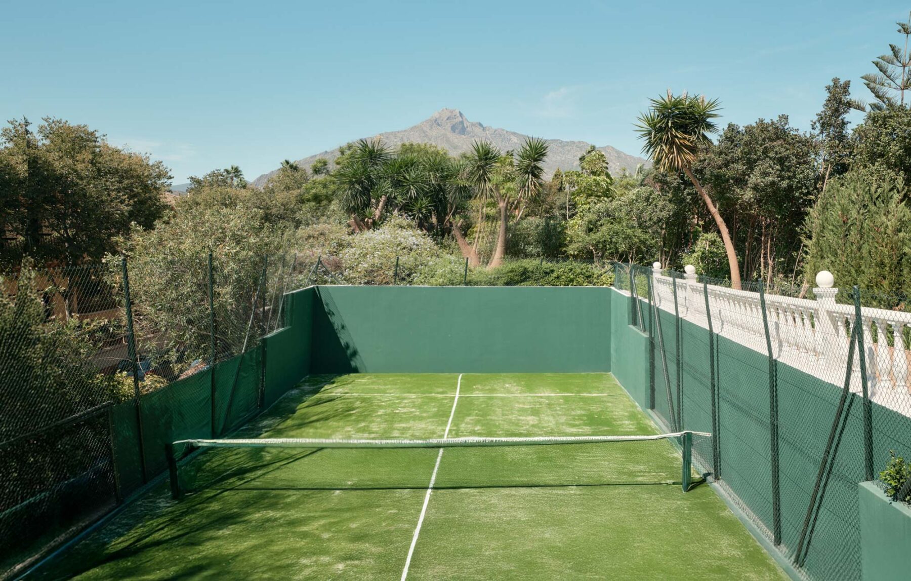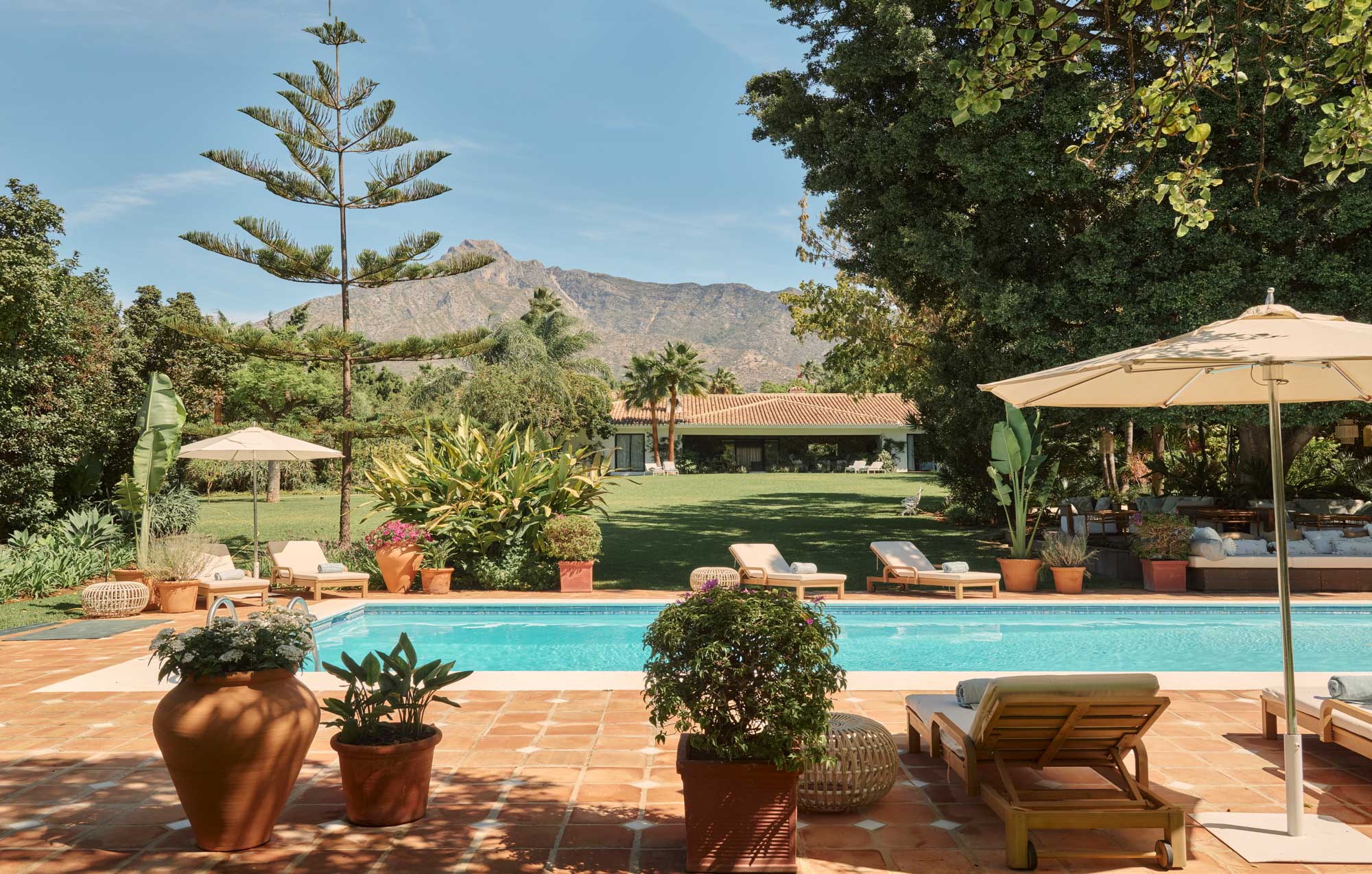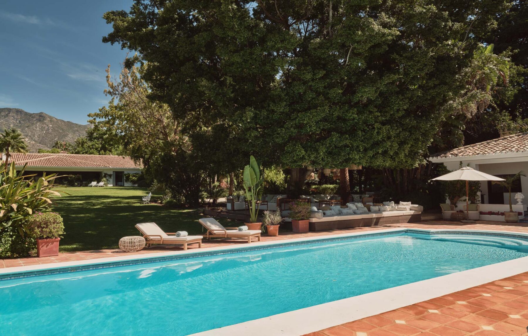 The lawn is a standout feature – open, level and perfectly positioned beneath La Concha. It’s equally suited to children playing freely as it is to a standing cocktail event at sunset, with the mountain views creating a memorable backdrop.