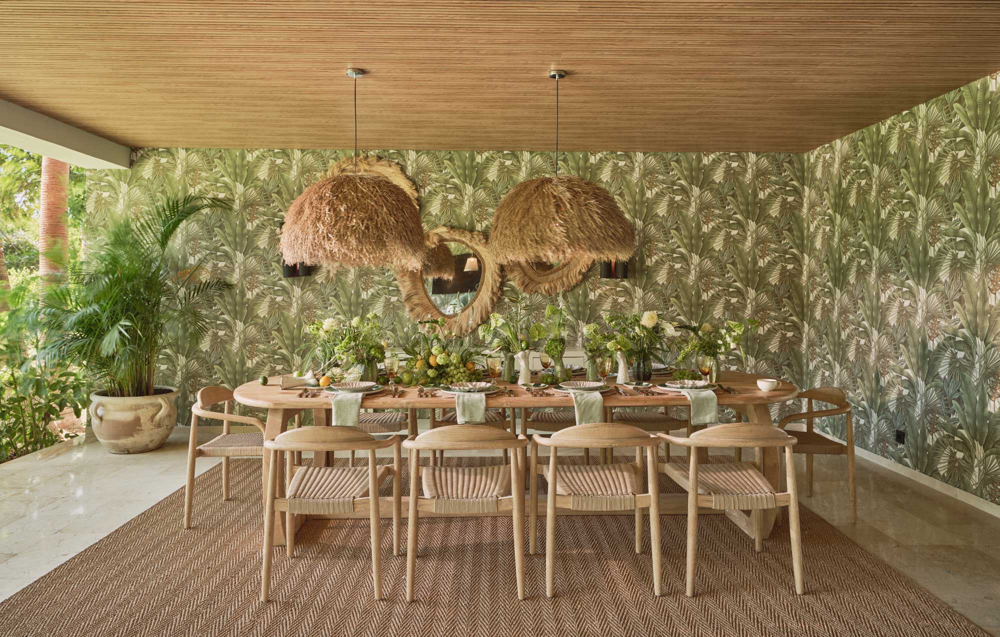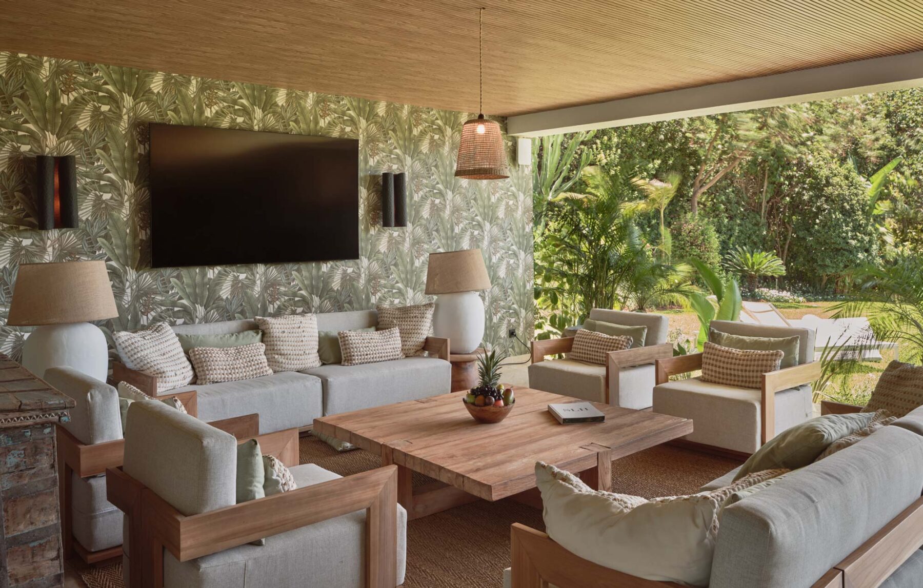 The padel court is a standout feature for me – a very rare find in residential villas and a great option for a quick game with the kids or a more serious rally if you're looking to hone your skills. I also love the covered lounge terrace with its statement wallpaper - it extends the main living area beautifully and delivers that seamless indoor-outdoor feel.