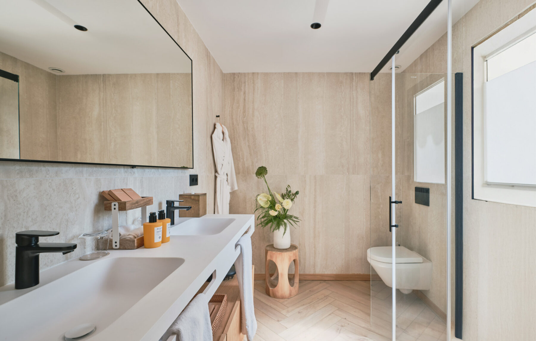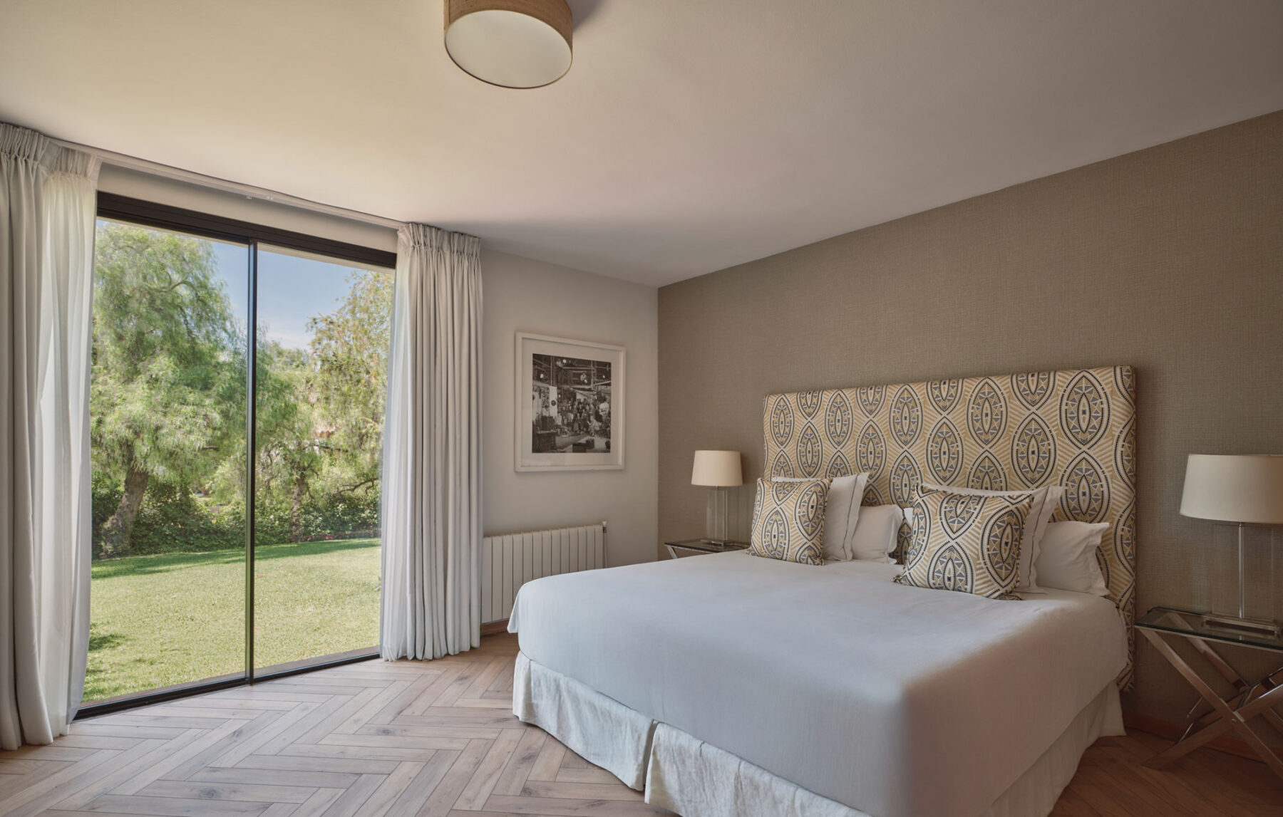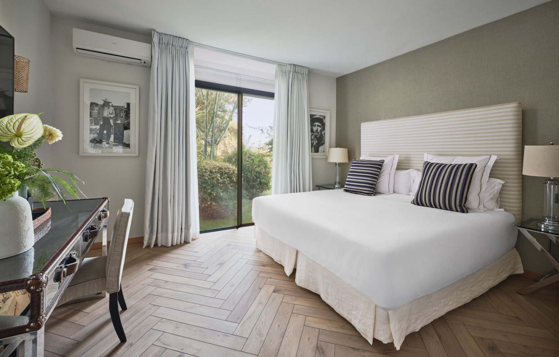 Villa Lorenea’s newly redesigned interiors are pared back and well-balanced, with white walls, herringbone floors and soft architectural lines creating a sense of tranquillity throughout. The layout balances open-plan spaces for entertaining with quieter zones for reading, work or rest.