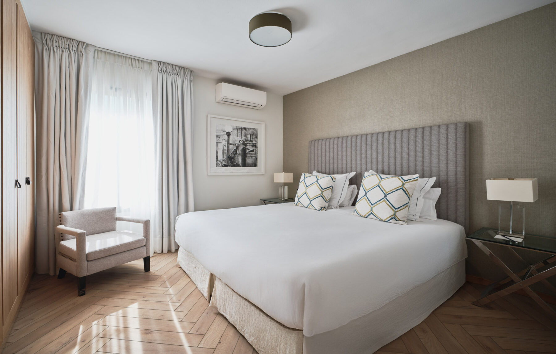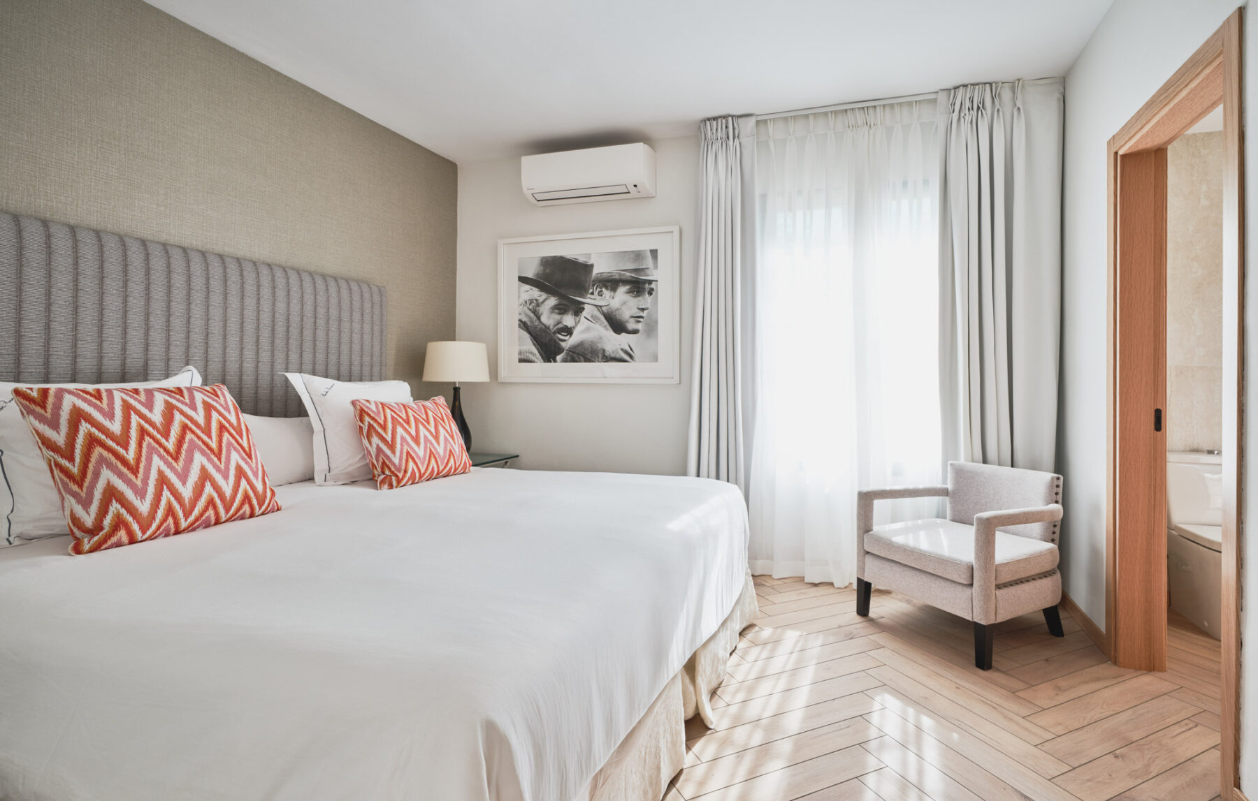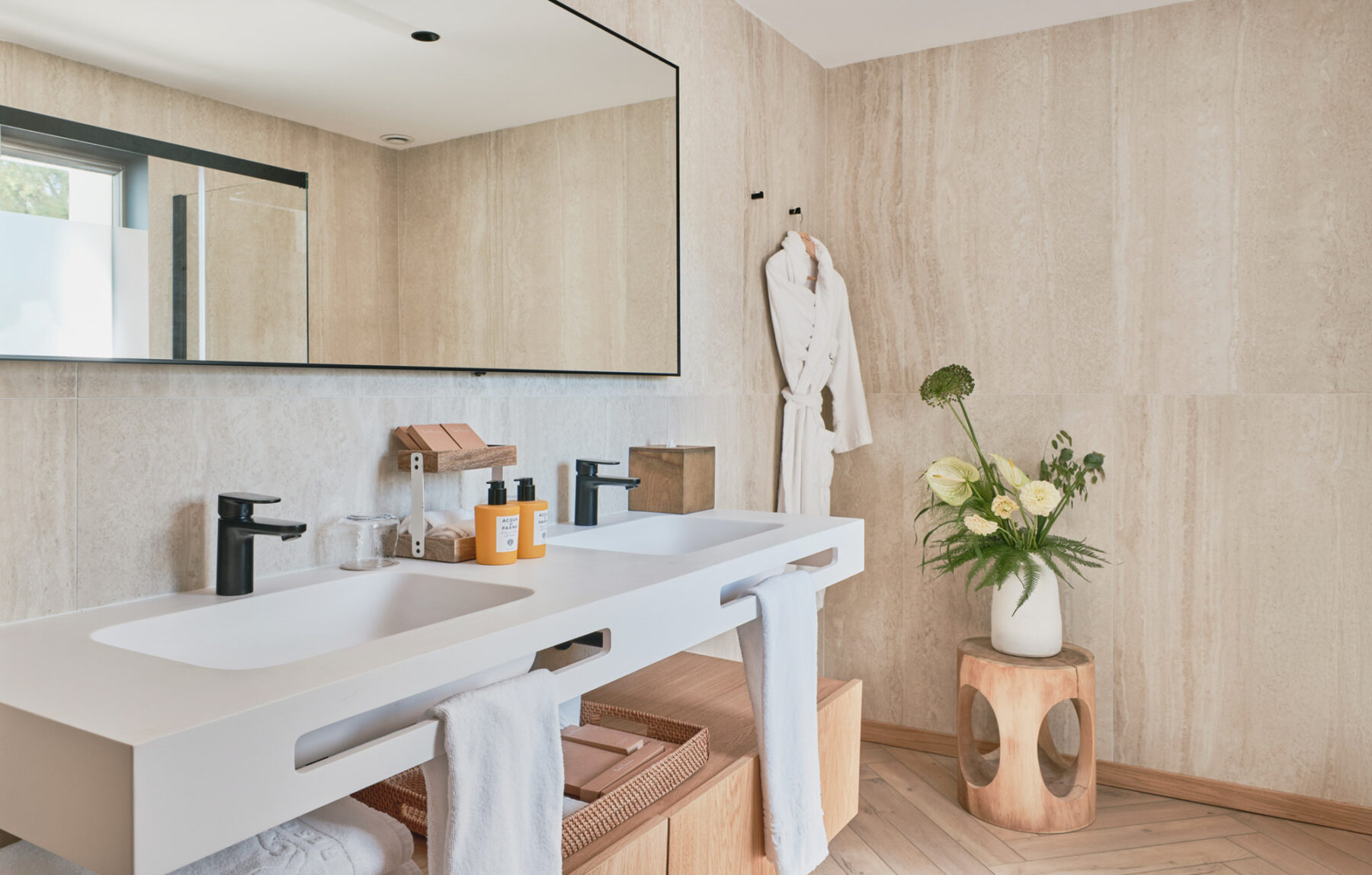 Villa Lorenea’s newly redesigned interiors are pared back and well-balanced, with white walls, herringbone floors and soft architectural lines creating a sense of tranquillity throughout. The layout balances open-plan spaces for entertaining with quieter zones for reading, work or rest.