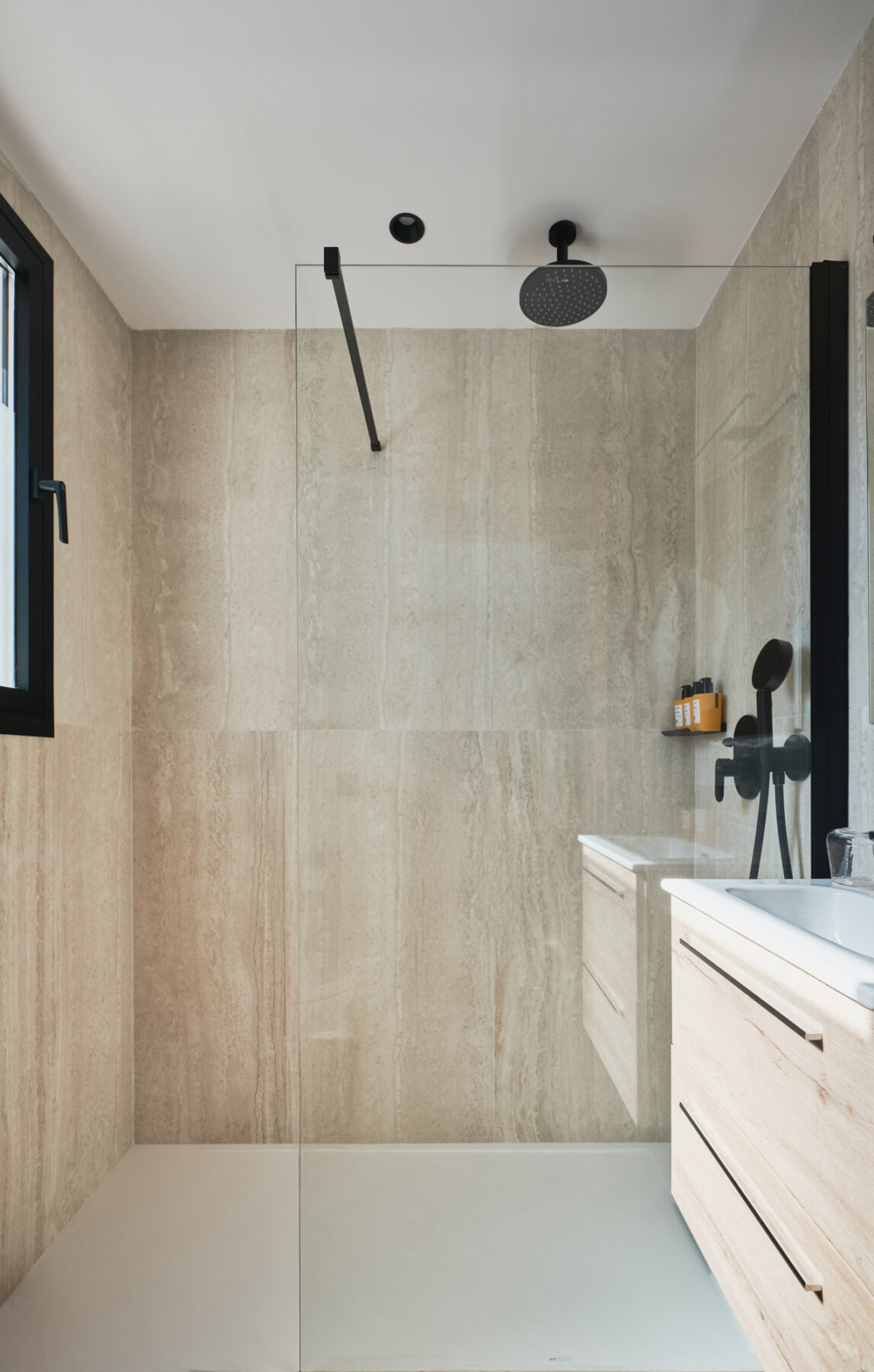 The en-suite bathroom features a walk-in shower and single vanity.