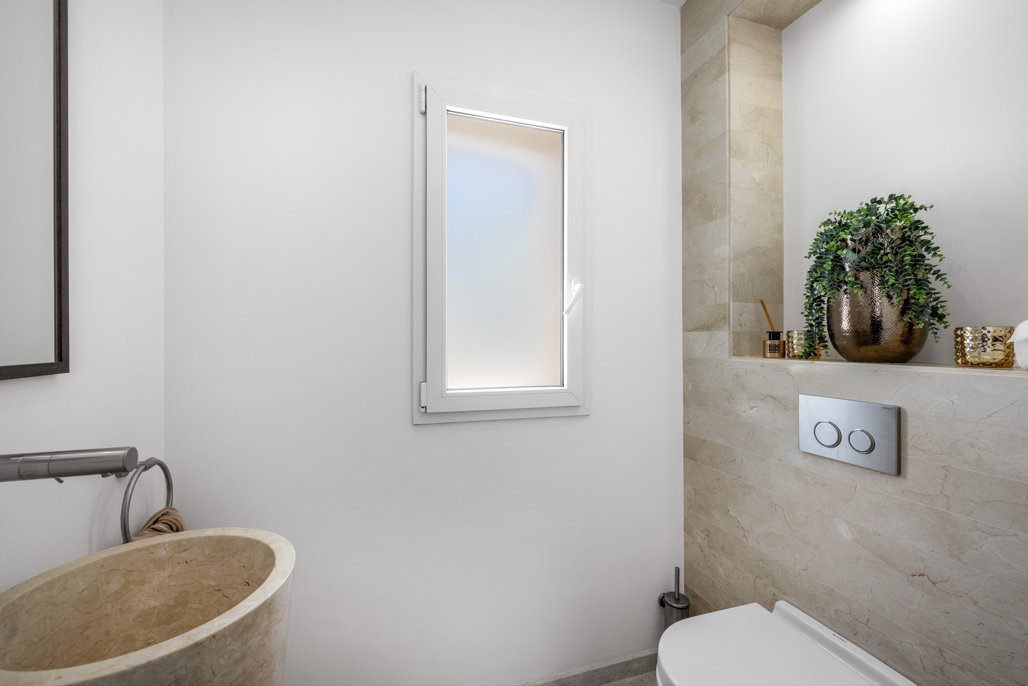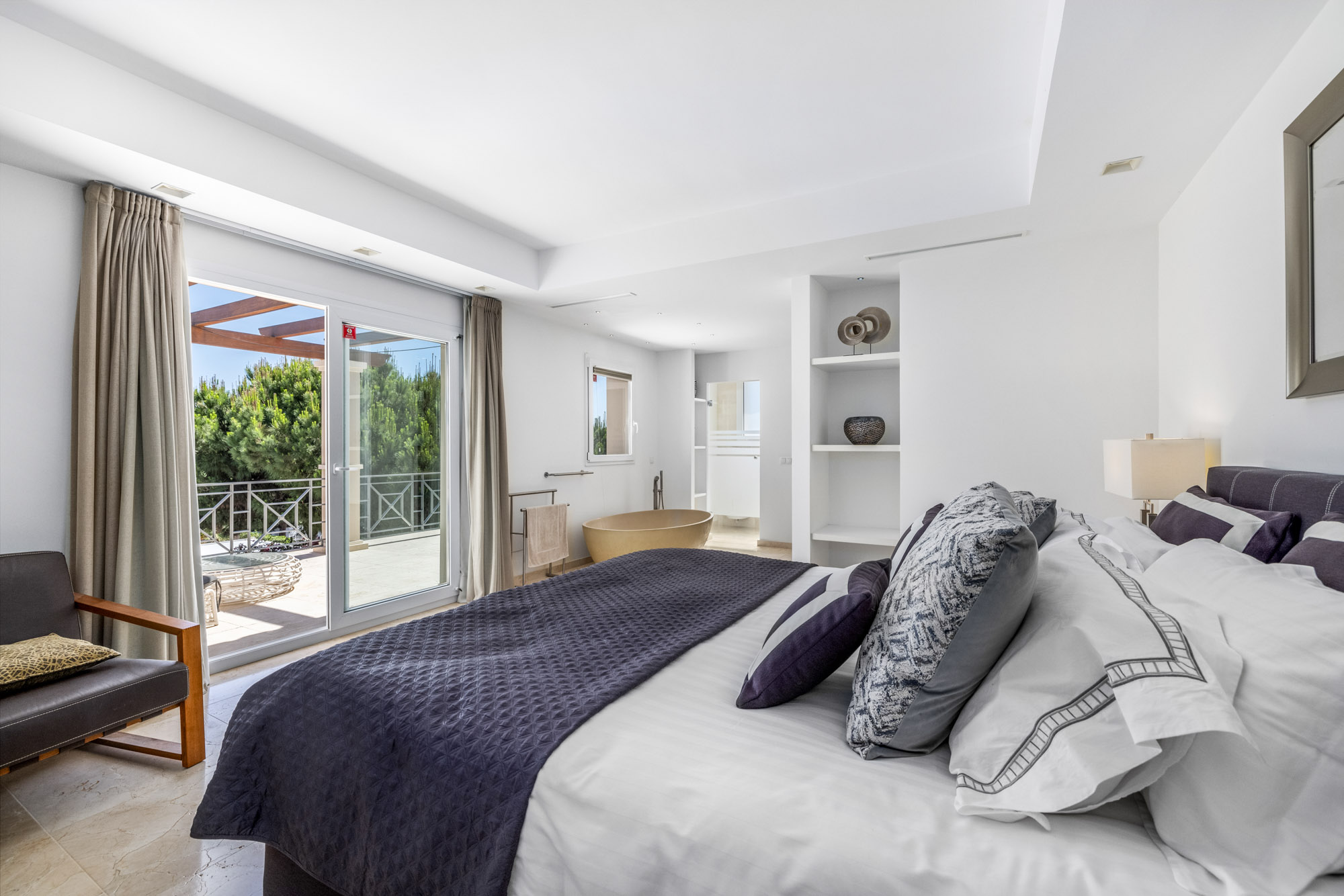 The villa has three double bedrooms located on the second floor, all of which are bright and comfortable with super king-sized beds (180x200cm), en-suite bathrooms and two large terraces and a balcony. The large master suite also benefits from its own private terrace with fabulous views of the sparkling Mediterranean sea.