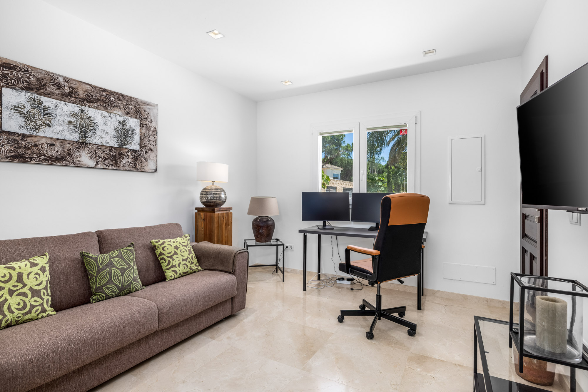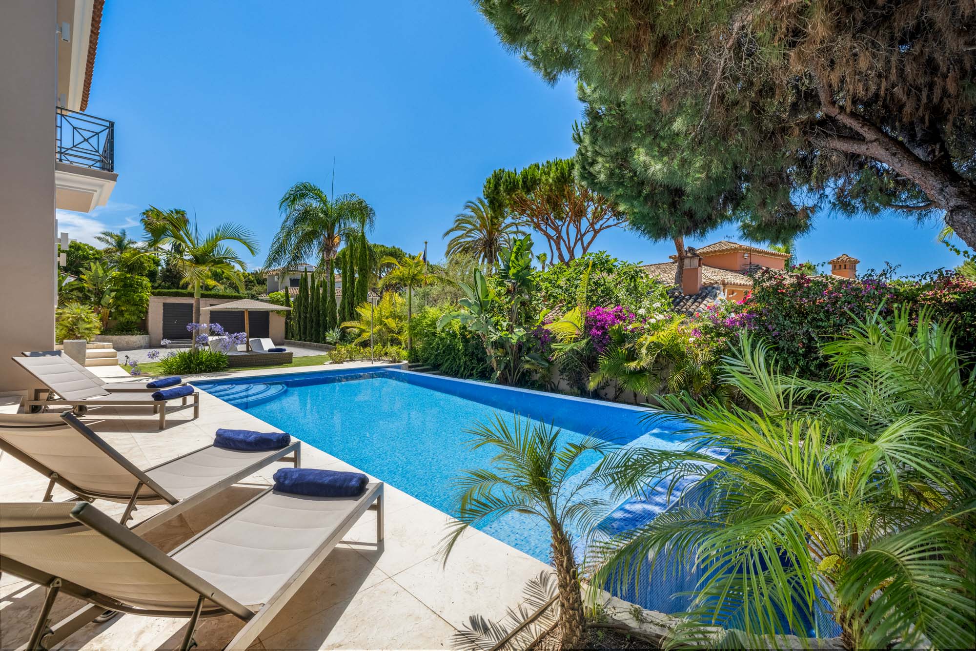Villa Luci is a modern and stylish beach villa, ideal for a family break in popular Marbesa, East Marbella. Located just a short stroll from kilometres of Costa del Sol beaches and popular beach clubs, the interiors have been recently upgraded creating a stylish oasis to comfortably sleep 8 adults + 2 children, in 4 en-suite double bedrooms + studio with sofa bed.