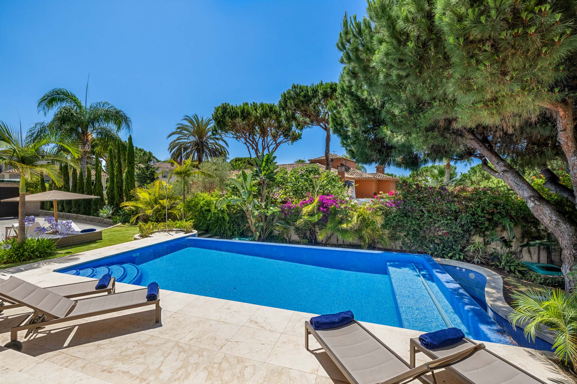 Spacious enough to accommodate eight adults and two children, this elegant villa has been recently refurbished to the highest standard and combines airy open-plan living with immaculately landscaped gardens and a stunning infinity-style pool.