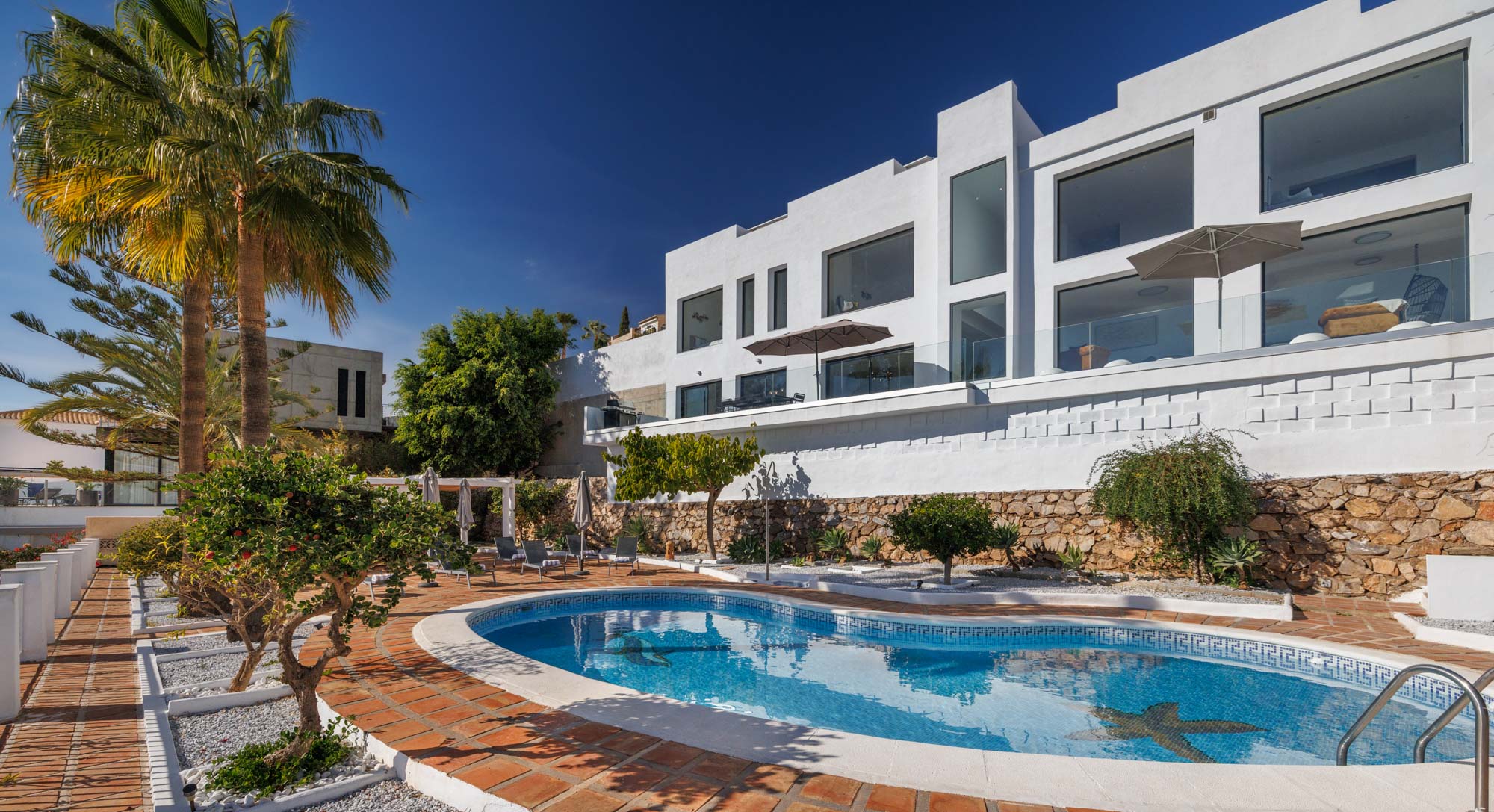 he owners’ keen eye for design have transformed Villa Lumiere into a light-filled space, where floor-to-ceiling windows perfectly frame the myriad shades of Mediterranean blue along the Costa Tropical.