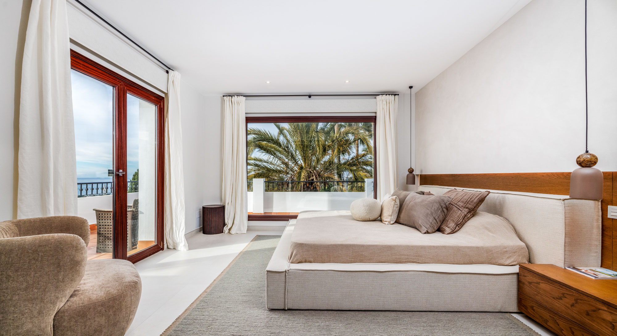 Villa Mae is the perfect example of how you can transform a classic villa into a luxurious modern holiday home. To me, it felt like having one foot in Andalucia and the other in LA, the cool and elegant interiors spill out to the sea view terraces and aromatic Mediterranean gardens.