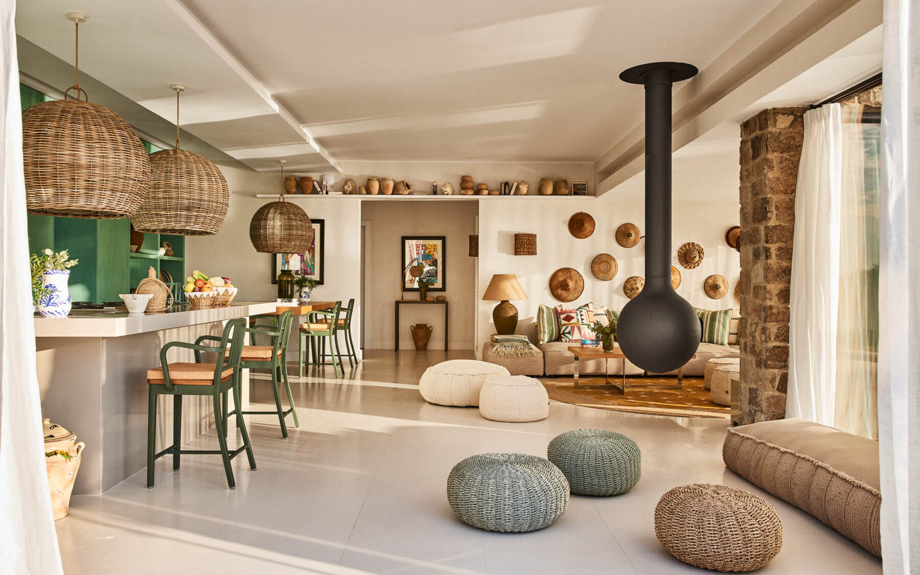 The interiors of Villa Marena are closely attuned to the surrounding landscape. Original stonework and natural materials root the house in its coastal setting, while a soft, organic palette draws the eye outward to the lush gardens, undulating dunes and glittering sea beyond.