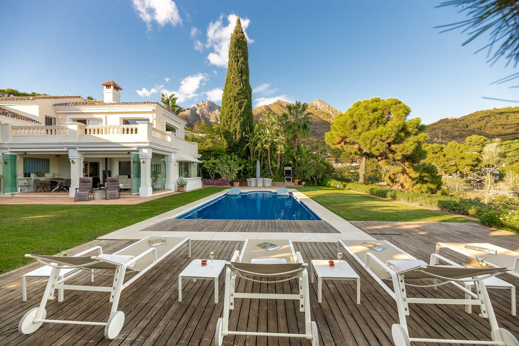 If spending quality time outdoors is what your Marbella holidays are all about, you’ll love Villa Marilu! The flat, lawned garden is bordered by tropical shrubbery and palms which lend complete privacy to your stay.