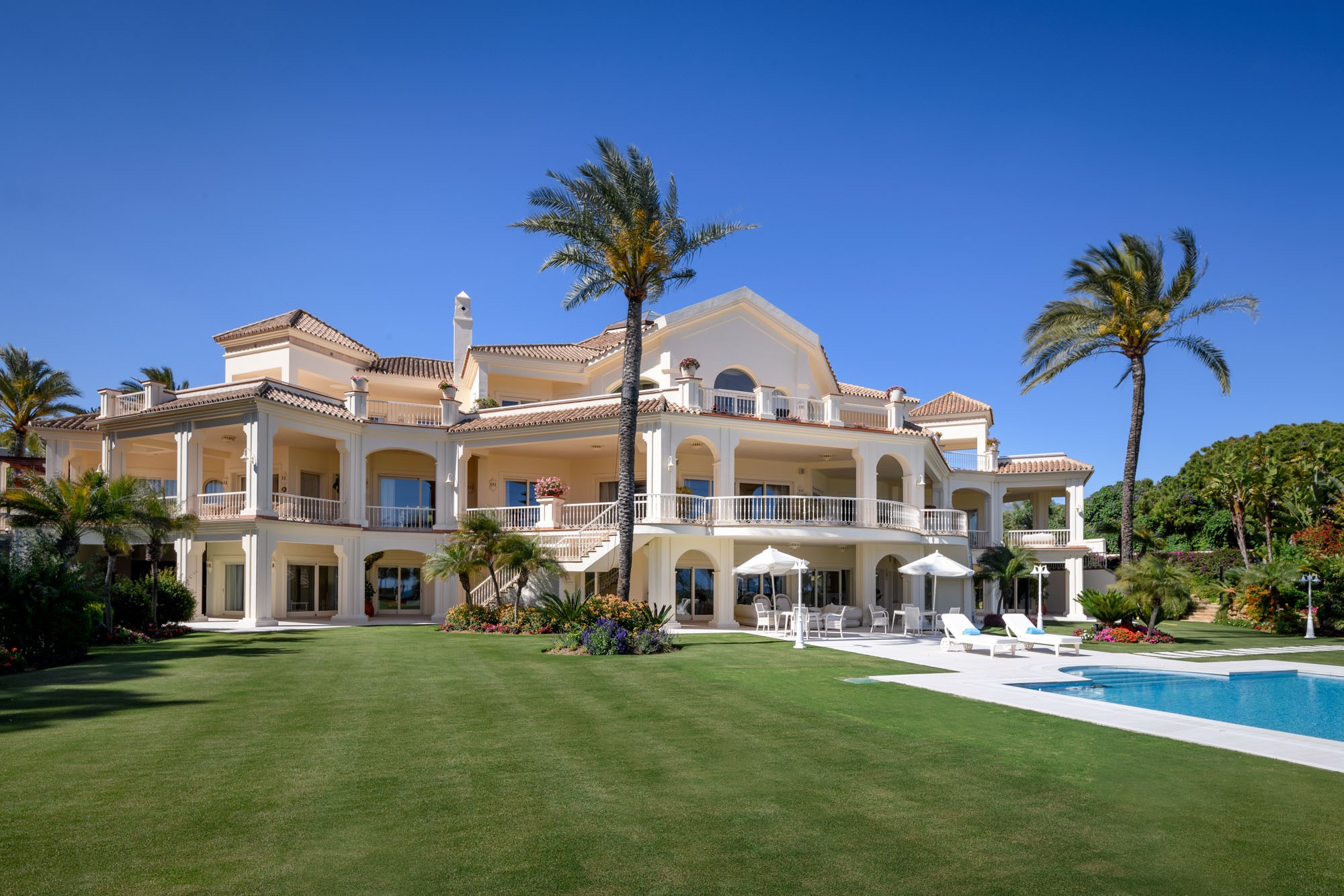 Villa Marivi is the most luxurious beachfront villa in Marbella. A sight to behold, occupying 6000m2 of Marbella’s most prestigious coastline, it has 10-bedrooms, indoor and outdoor pools, tennis court and spa.