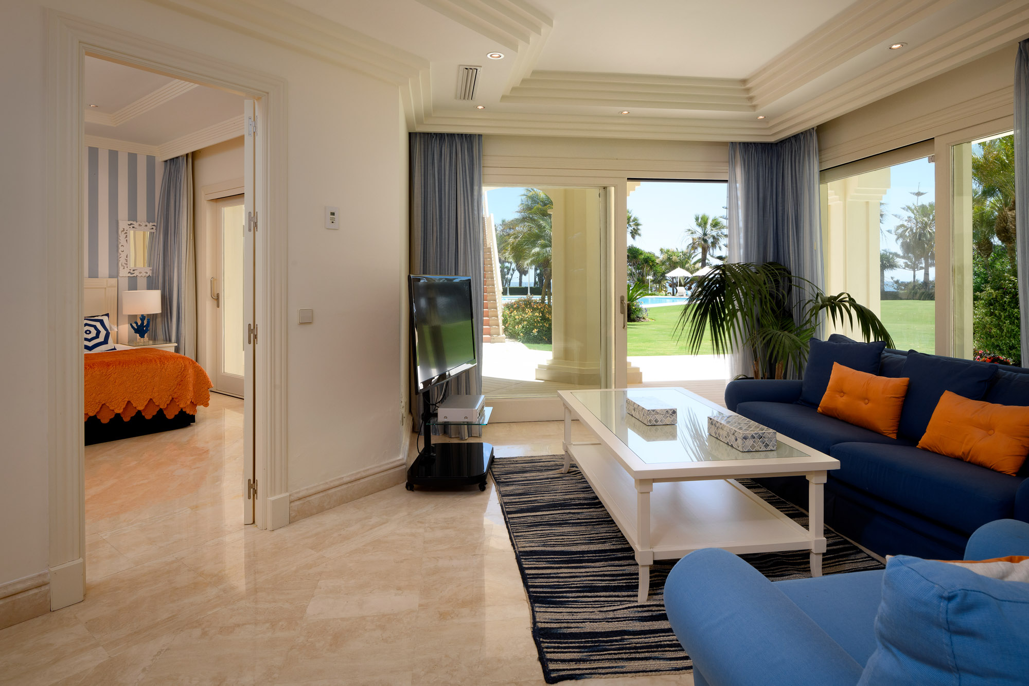 Villa Marivi’s Golden Mile beach location is only enjoyed by a very select bunch of villas; it’s just a five-minute stroll to Michelin star restaurants, and yet the privacy of the villa is undeniable. Accessible and yet discreet.