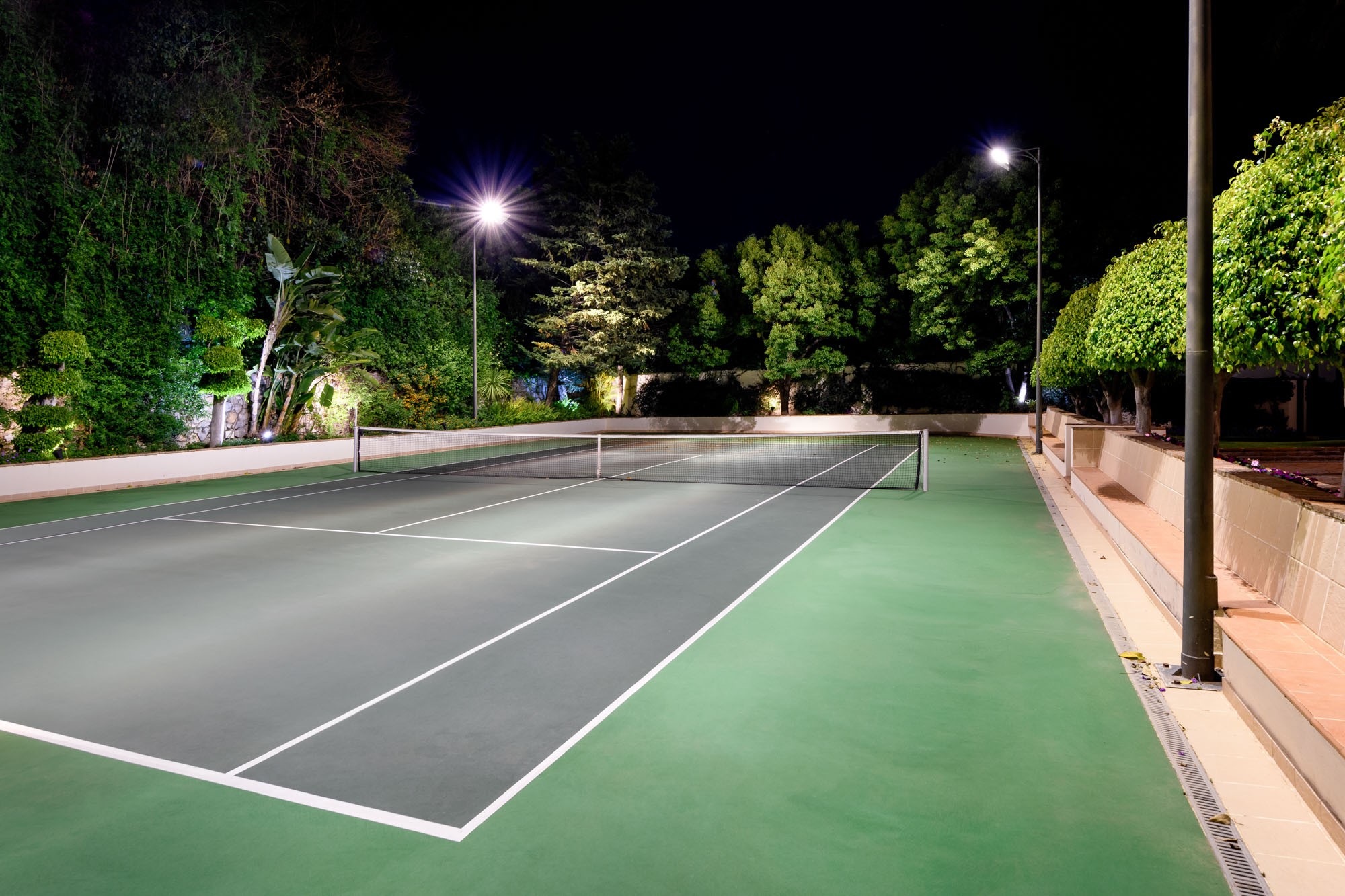Finally, the private tennis court can be enjoyed at any time, day or night.