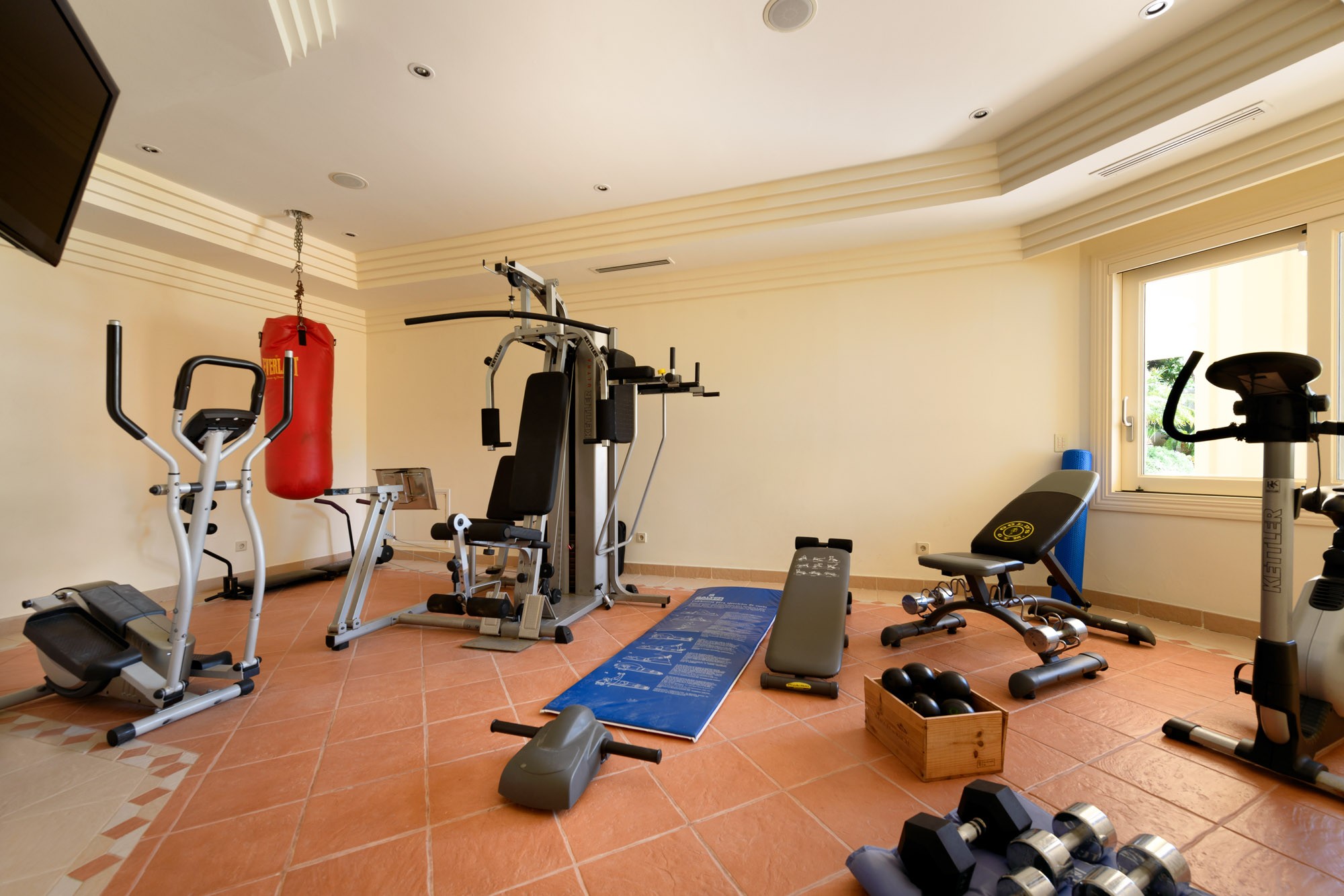 After your workout and pampering, there is a relaxation area with sofas and a bar. Why not have your chef prepare a delicious green juice whilst soaking up the sea views?