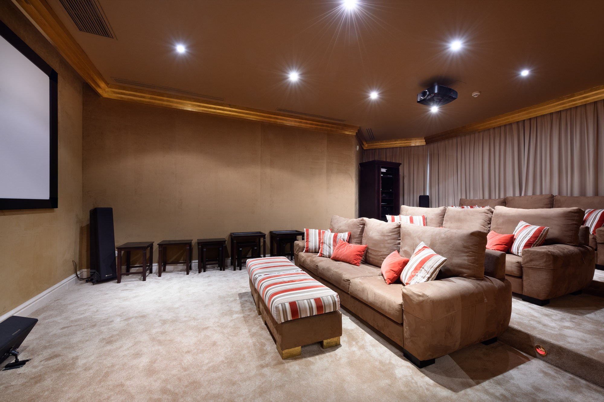 Inside, entertainment can be found in a sound-proofed nine seater cinema room with snug armchair seating, a pool table, small gym and complete home spa.