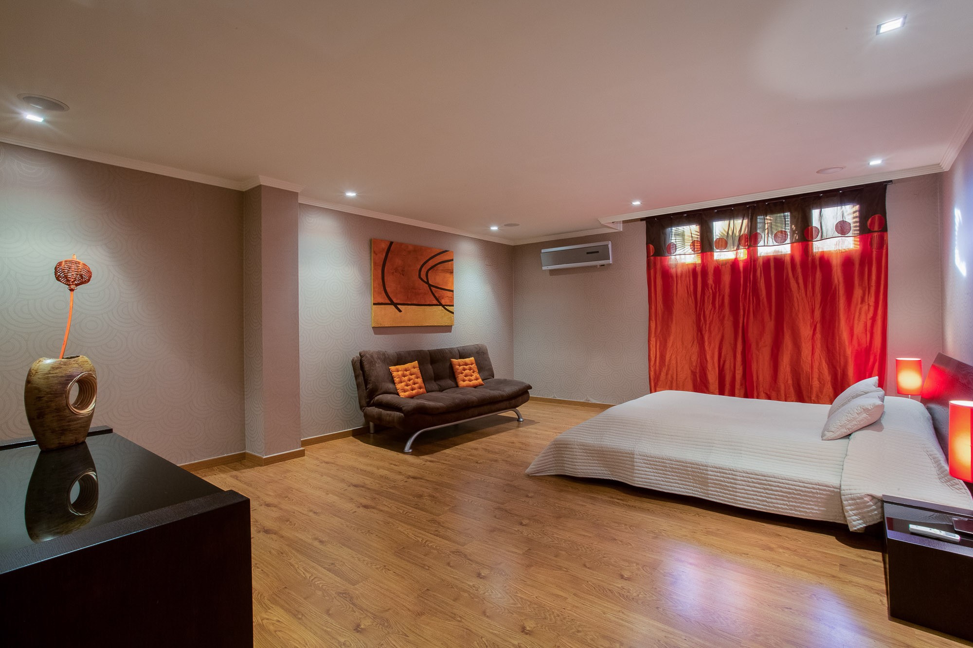For late night drinks with friends there’s also a small cocktail bar with funky LED lighting and a great sound system in case you fancy bopping the night away.