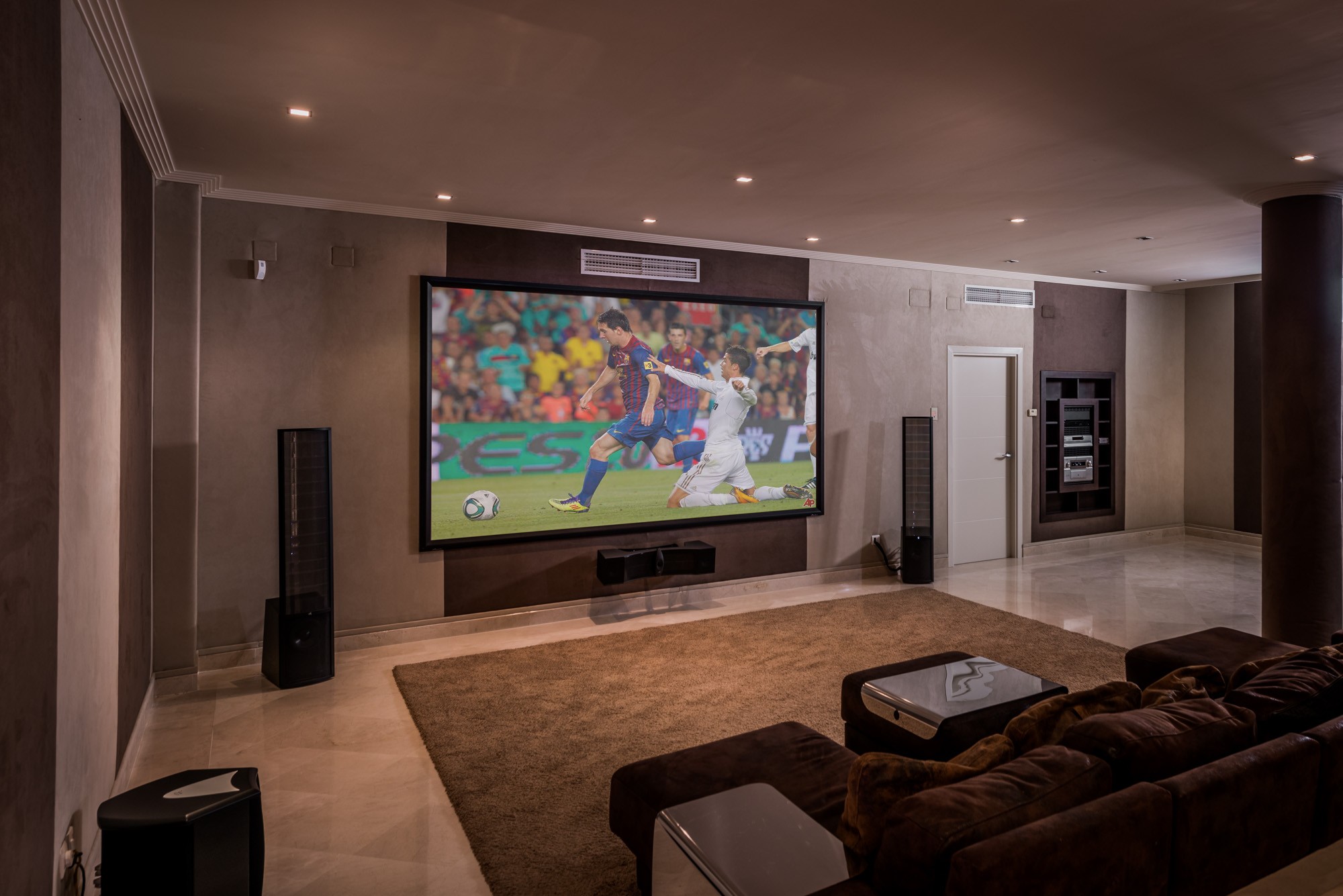 This is a house for tech-lovers, with a home automation system to control the surround sound and TV. Film buffs can make the most of the sleek sound-proofed cinema room with a full size wall-mounted screen, which features two rows of plush seats with foot stools so you can put your feet up and enjoy a movie in style.