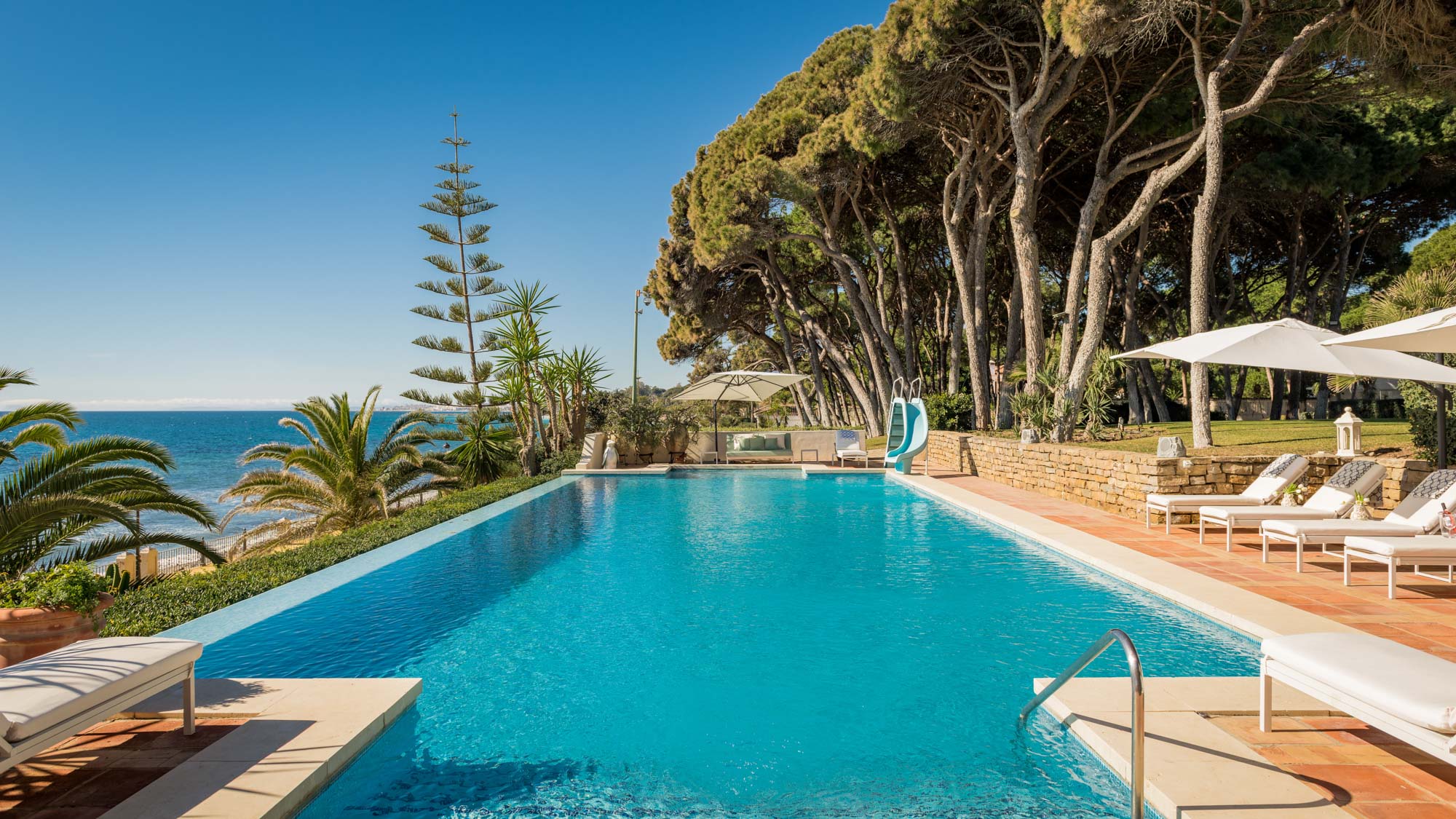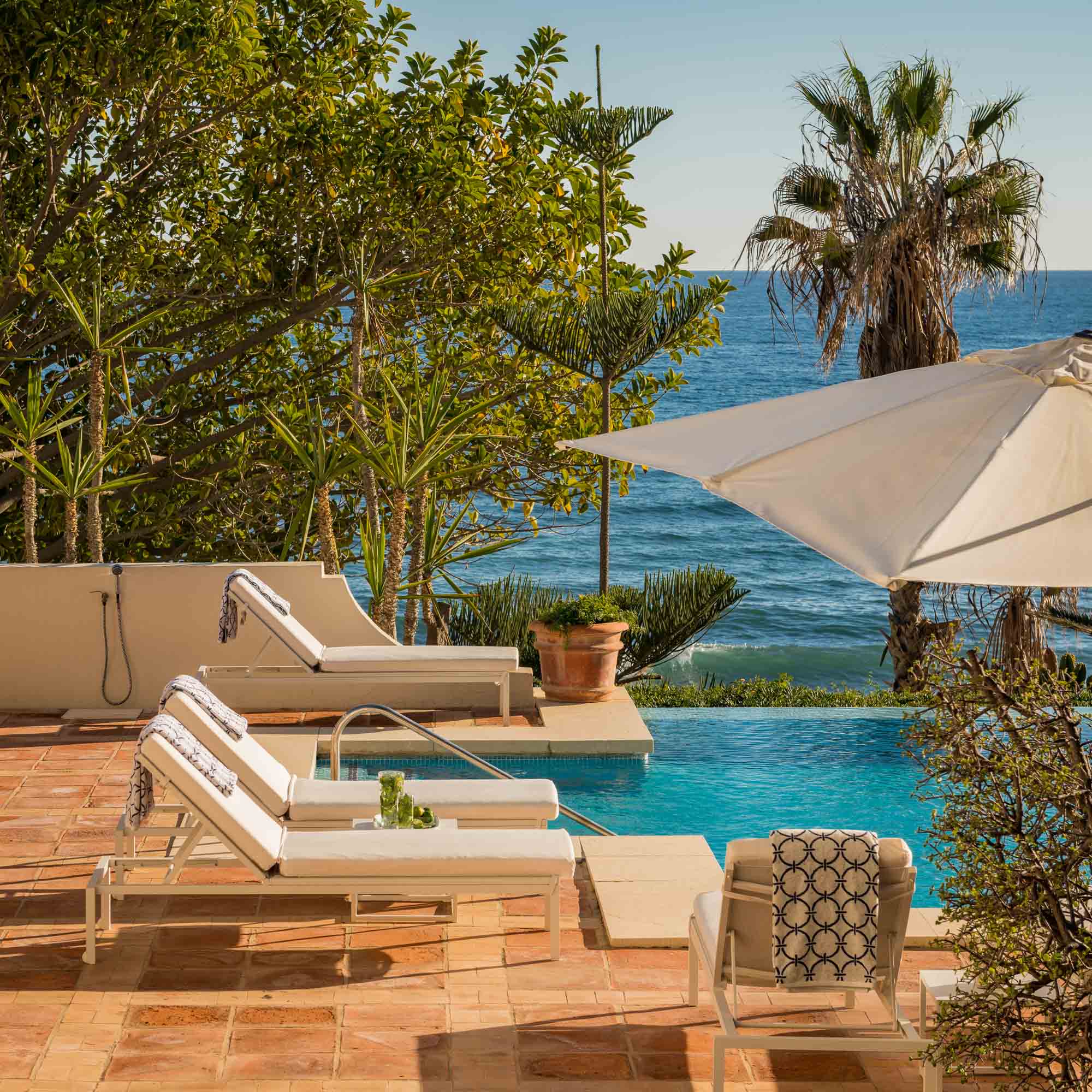 Outside, it crazy how much space there is, right here in the heart of Marbella - you could easily get lost in the gardens! The beach is close enough that you can hear the waves lapping on the sand, and from the vantage point of the infinity pool all you can see is blue sky meeting the azure sea. How heavenly it is to bask in the shallows on a hot summer day and take it all in – with a glass of champagne in hand, of course!