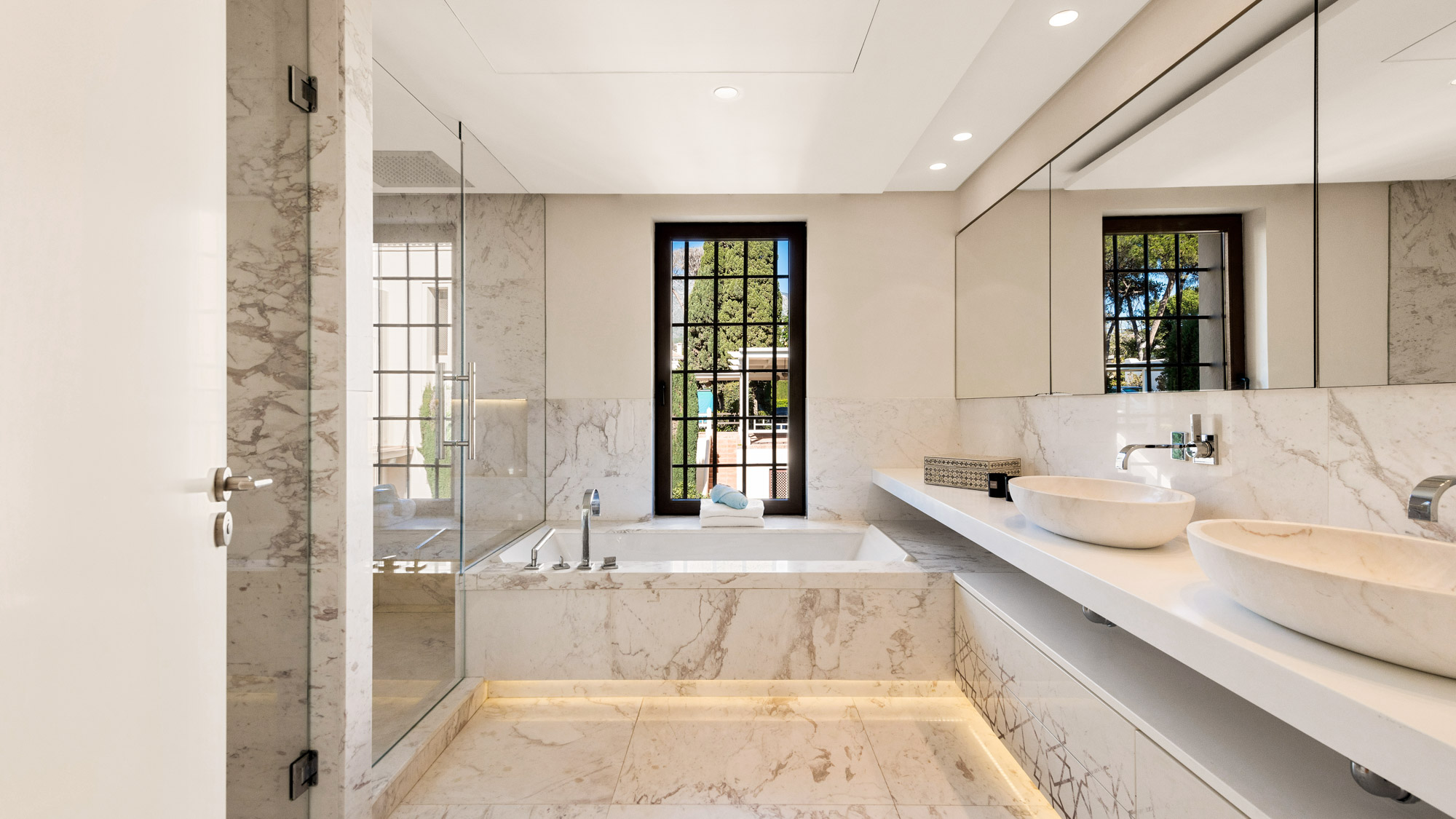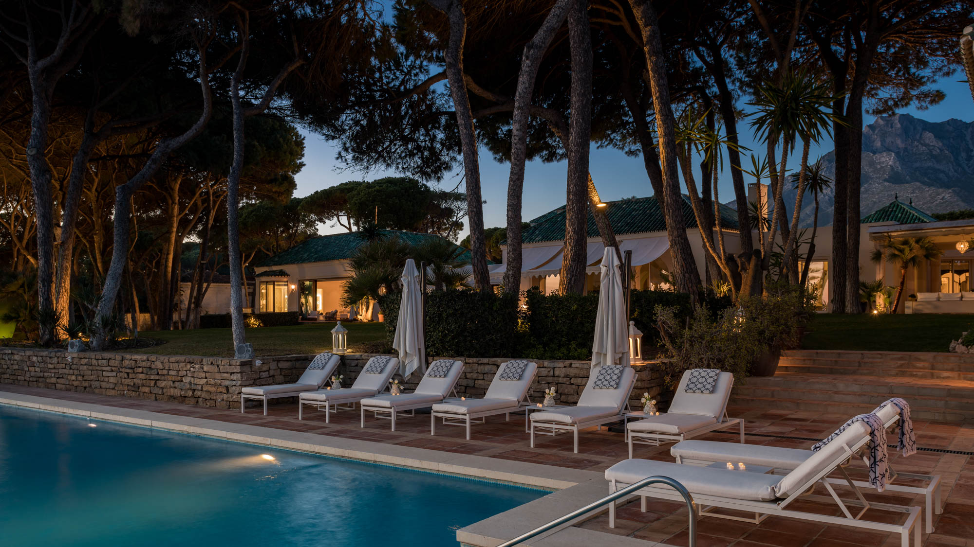 As if its unique design wasn’t attention-grabbing enough, Villa Sirenique also enjoys an enviable location on one of the most desired stretches of coastline in Marbella. Distributed over a luscious plot of land spanning nearly 12,000m2, the gardens of Villa Sirenique comprise gently undulating lawns ranged with soaring palm trees, Spanish pines, and towering firs, unfolding before a glittering horizon of sea. Marbella’s most exclusive beach – Playa Casablanca – lies just a short stroll away at the foot of the garden.