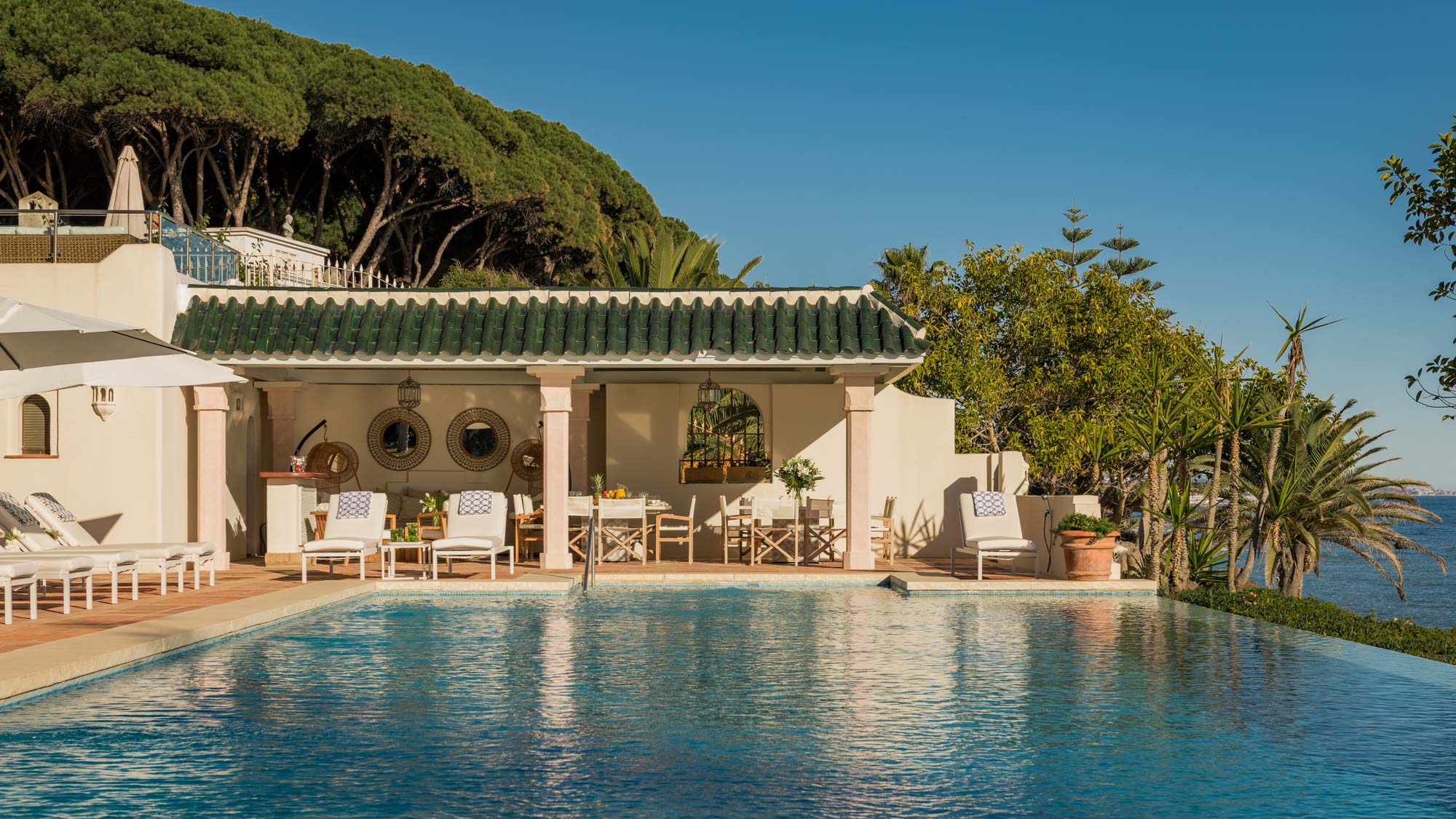 Two fabulous sea-facing swimming pools means you’ll be spoilt for choice when it comes to deciding where to take your morning dip, while endless options for evening entertainment are provided courtesy of the glamorous restaurants and bars of the Golden Mile – all located within walking distance of Villa Sirenique.