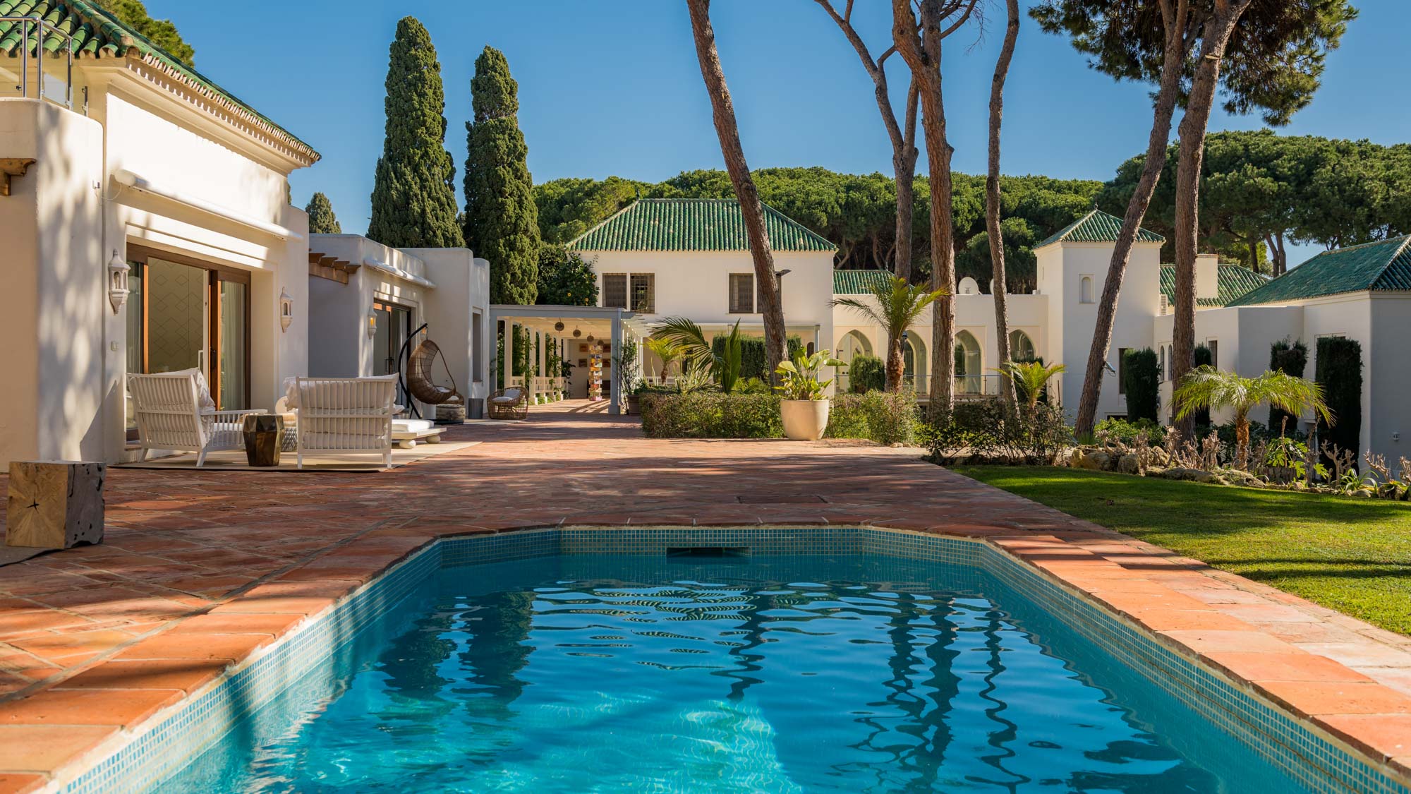 Built in Andalusian Moorish style, the villa’s stunning original features and high-quality finishes have been teamed with vibrant modern interiors courtesy of renowned Spanish designer Pedro Peña to highlight the special character of this beach side home.