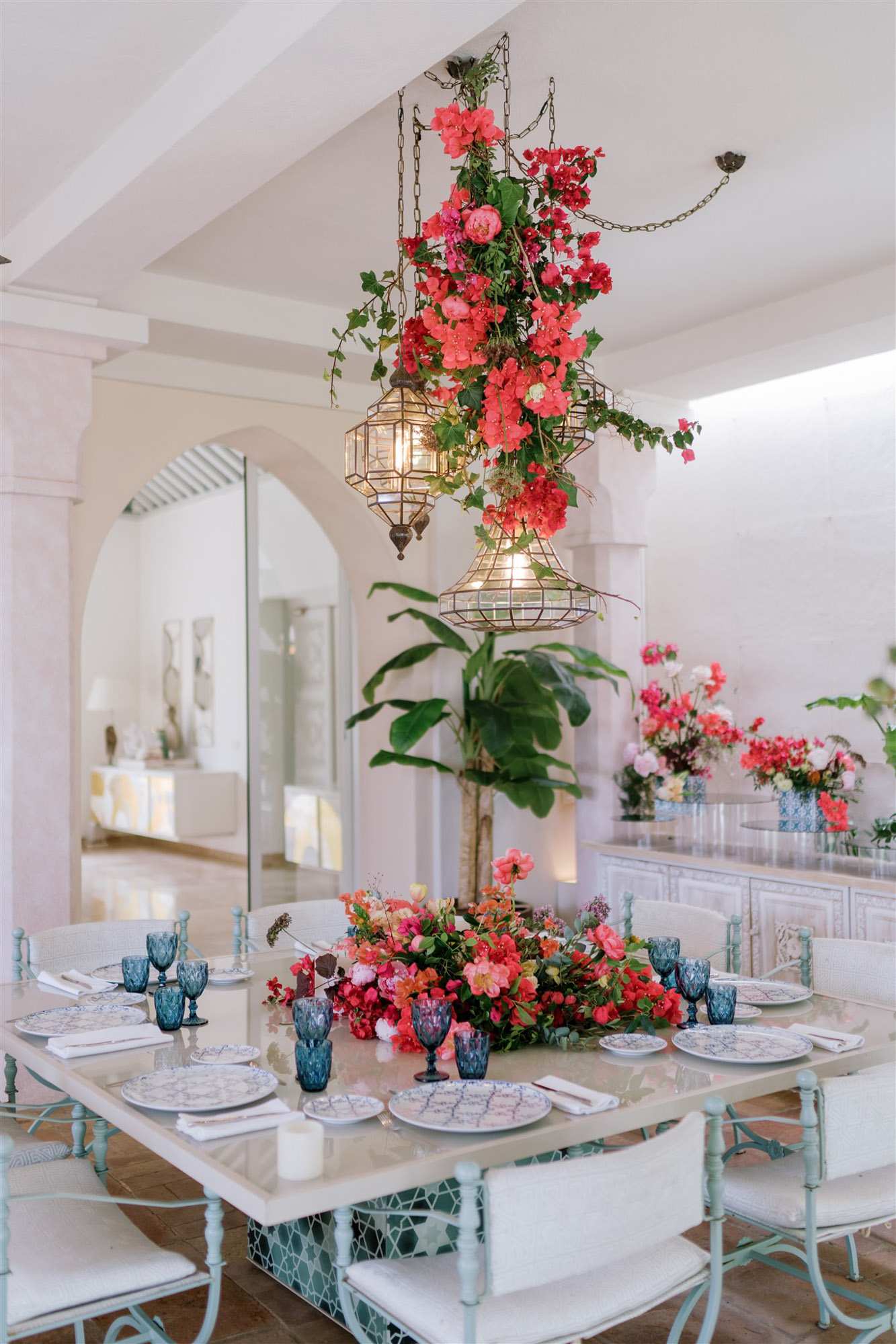 Known for his bold colours and statement pieces, Peña has effortlessly married Villa Sirenique’s elegant original features – including distinctive, Moroccan arches and hand tooled doors – with decadent modernity in the form of vibrant couches and armchairs, gold flecked tables and statement light fittings. There’s simply no place like it.