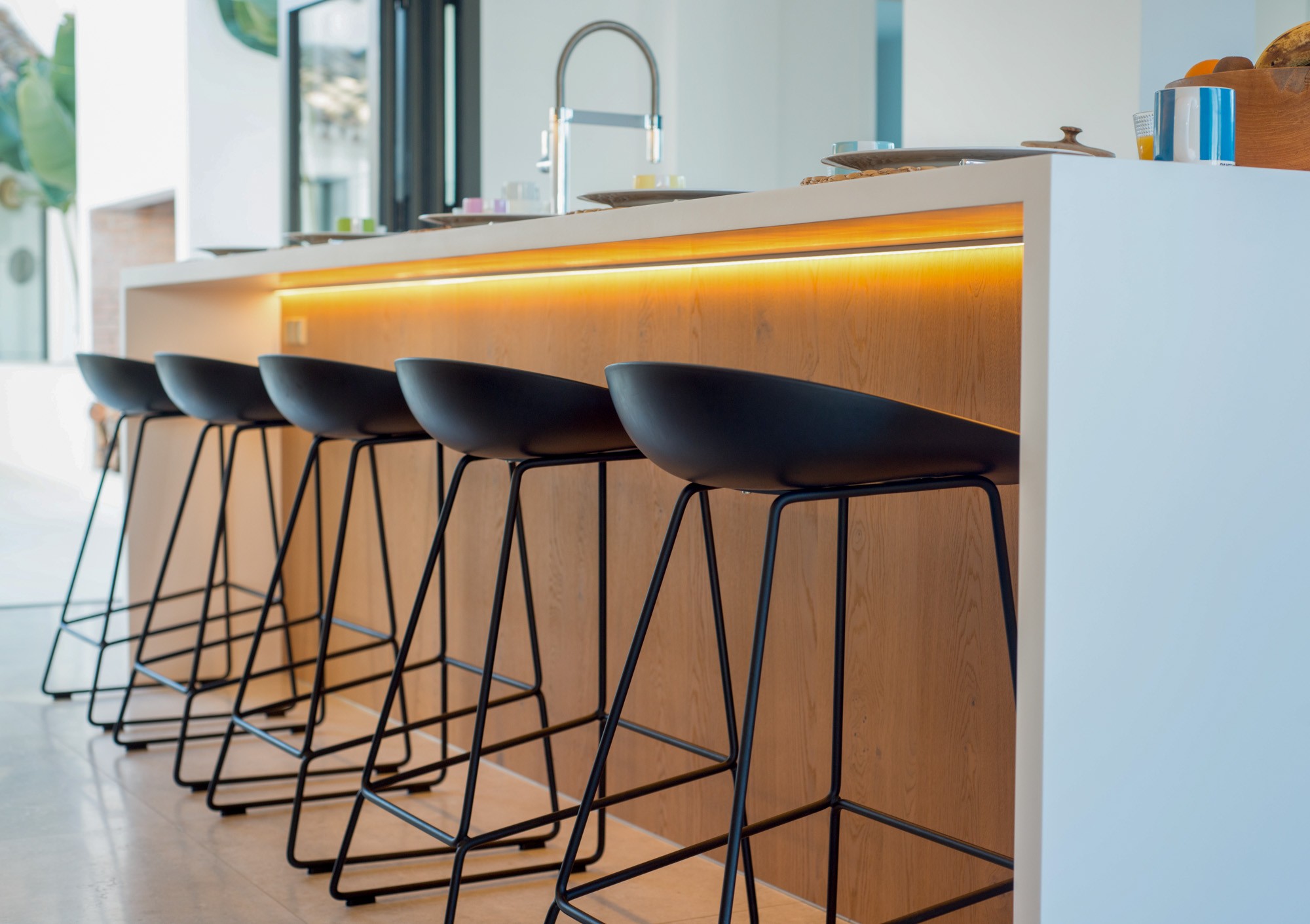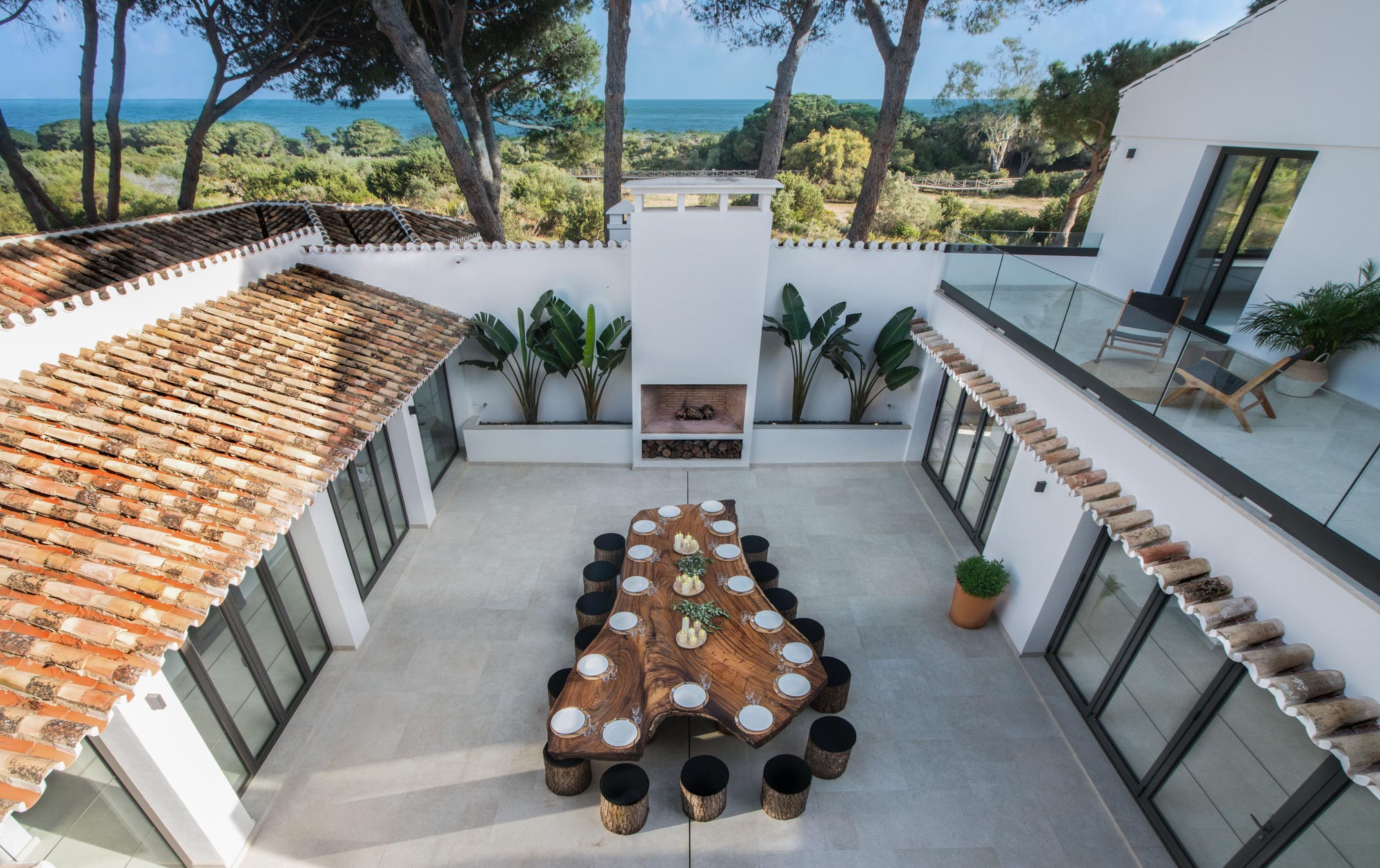 Villa Siroko has four places to eat: the indoor dining room which seats 8+; next to the BBQ at the back of the house which seats 12 under the pine trees; and the kitchen with its 5-seater breakfast bar, and – of course – the amazing central courtyard, seating 14 – 22 around a bespoke hand-carved table.