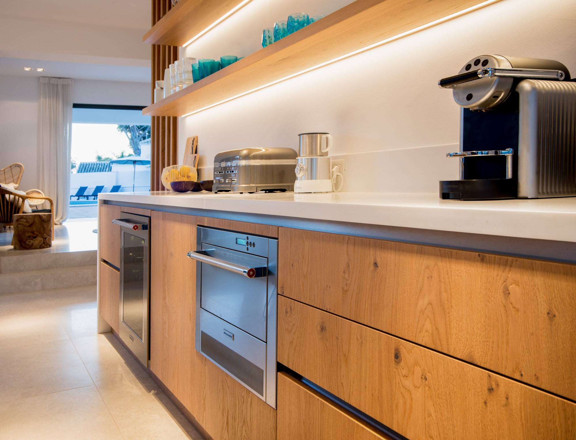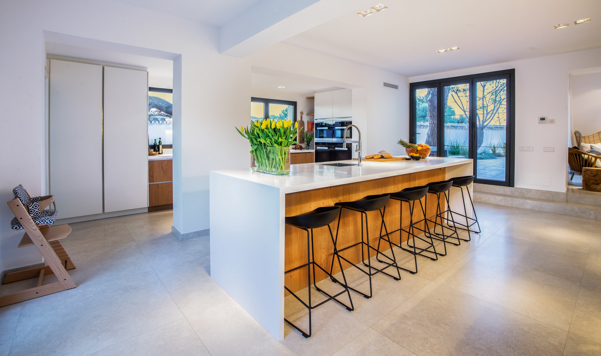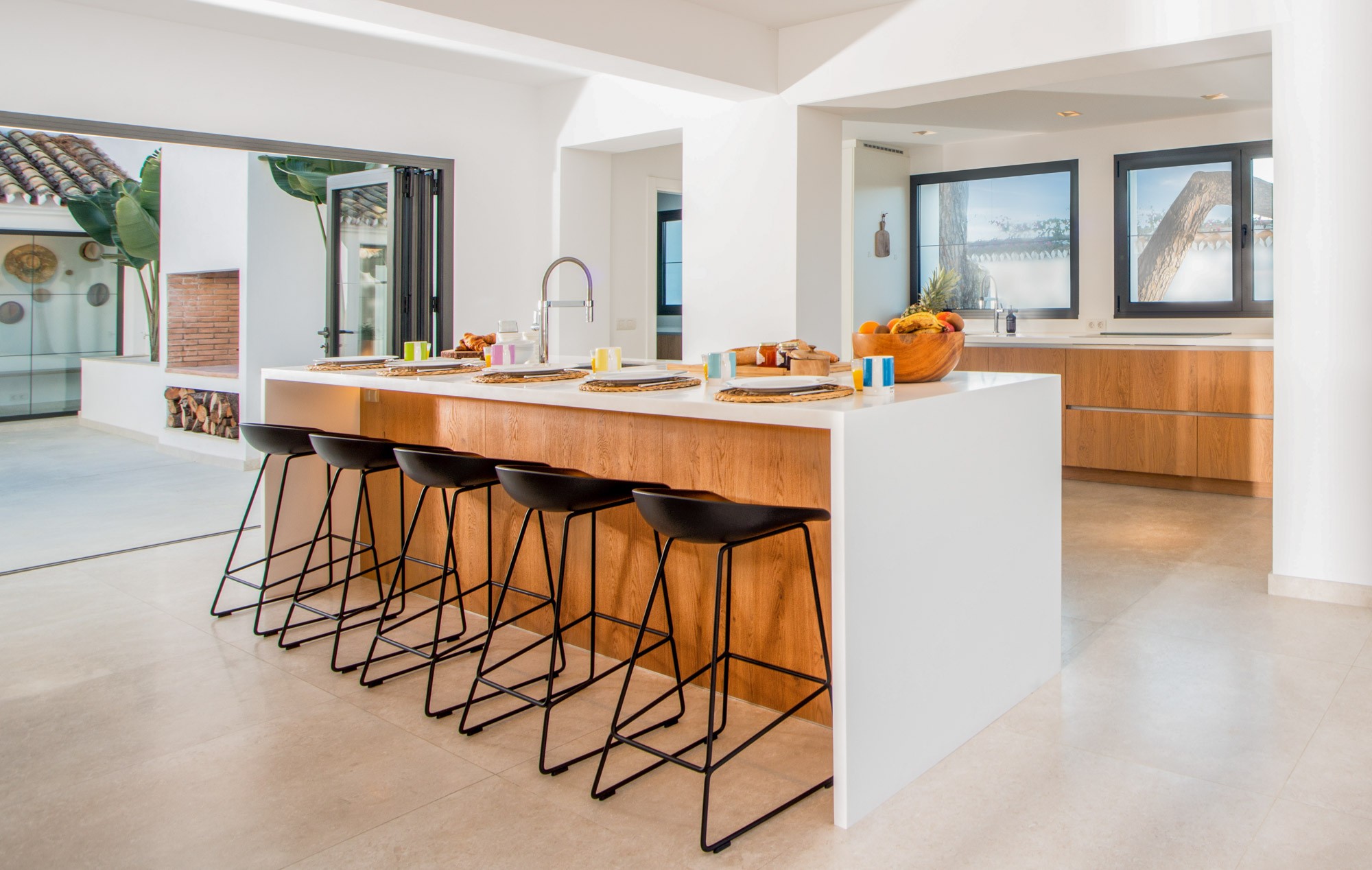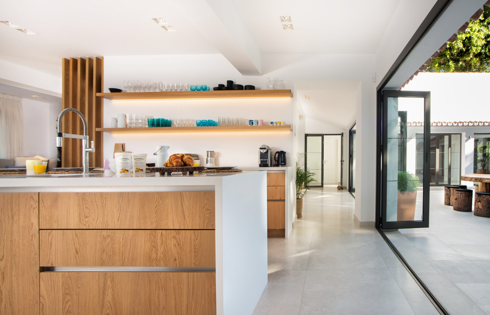 The kitchen is perfectly situated between the courtyard, BBQ area and indoor dining room.