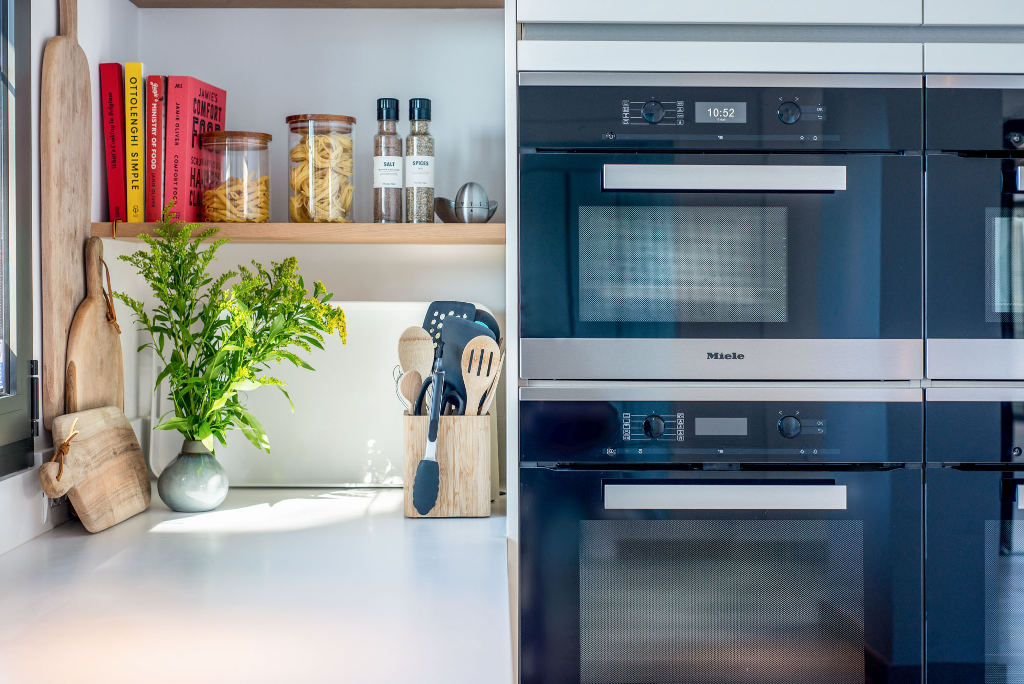 It has Miele appliances, two dishwashers, four ovens (one steamer oven and microwave), ice maker, wine cooler, fully equipped larder with fridge and freezer. There’s also a Nespresso Pro machine for those much-needed coffees and a breakfast bar seating four.