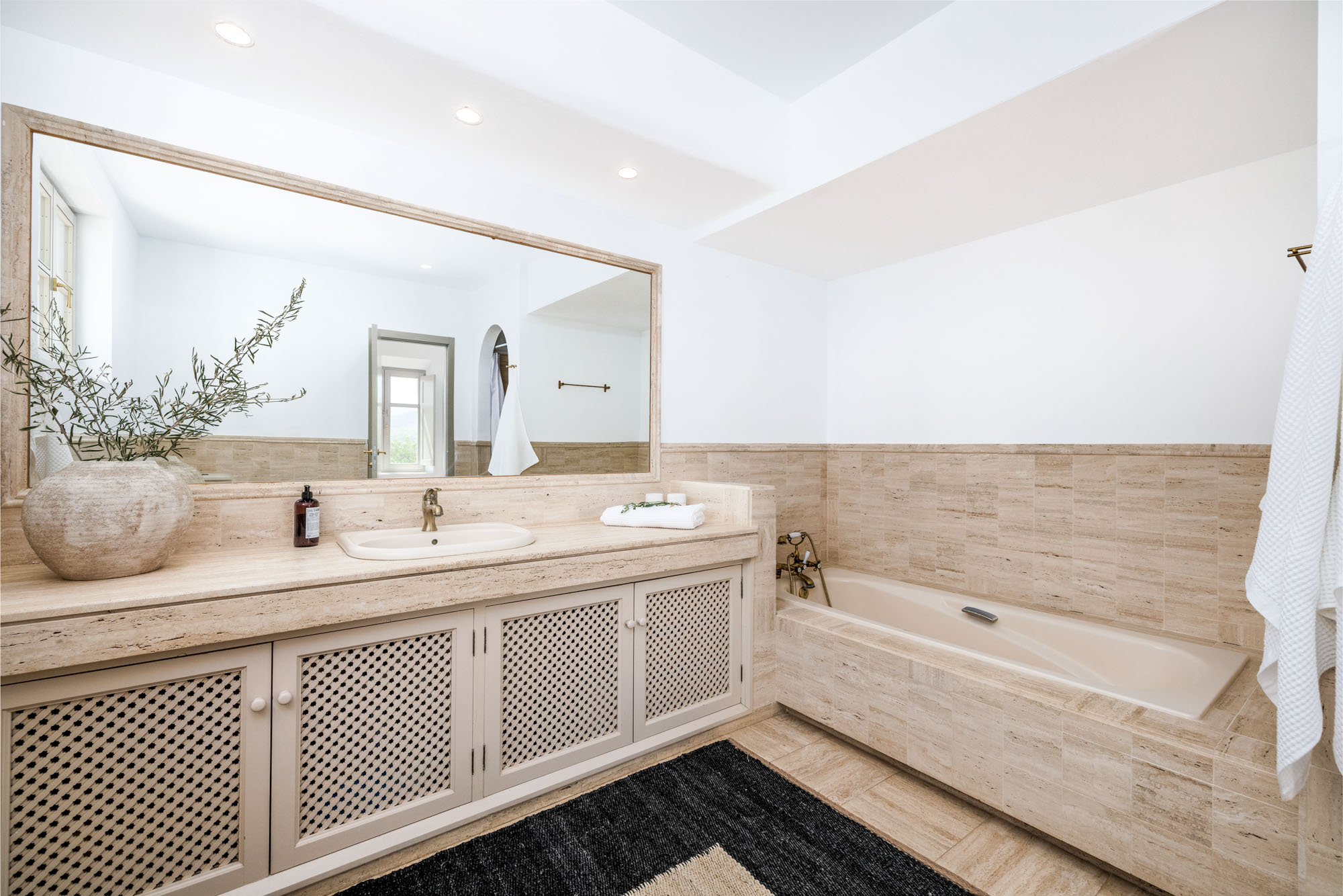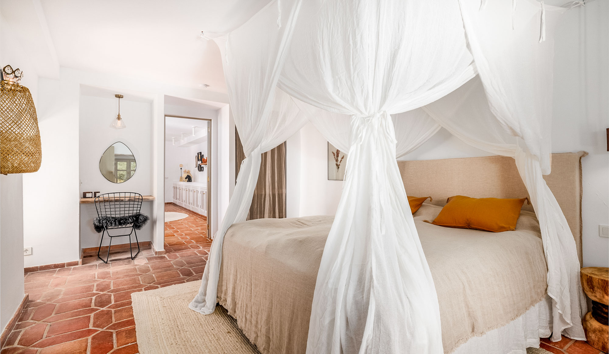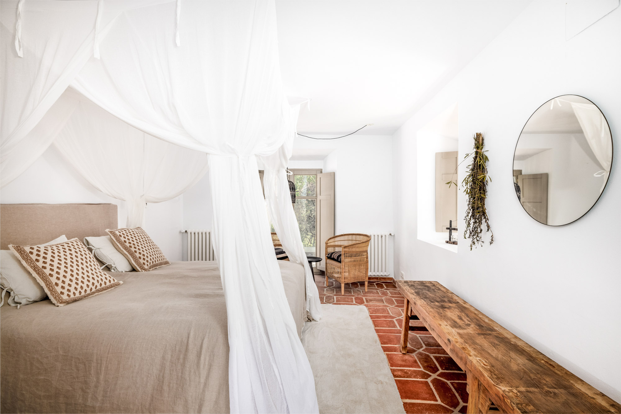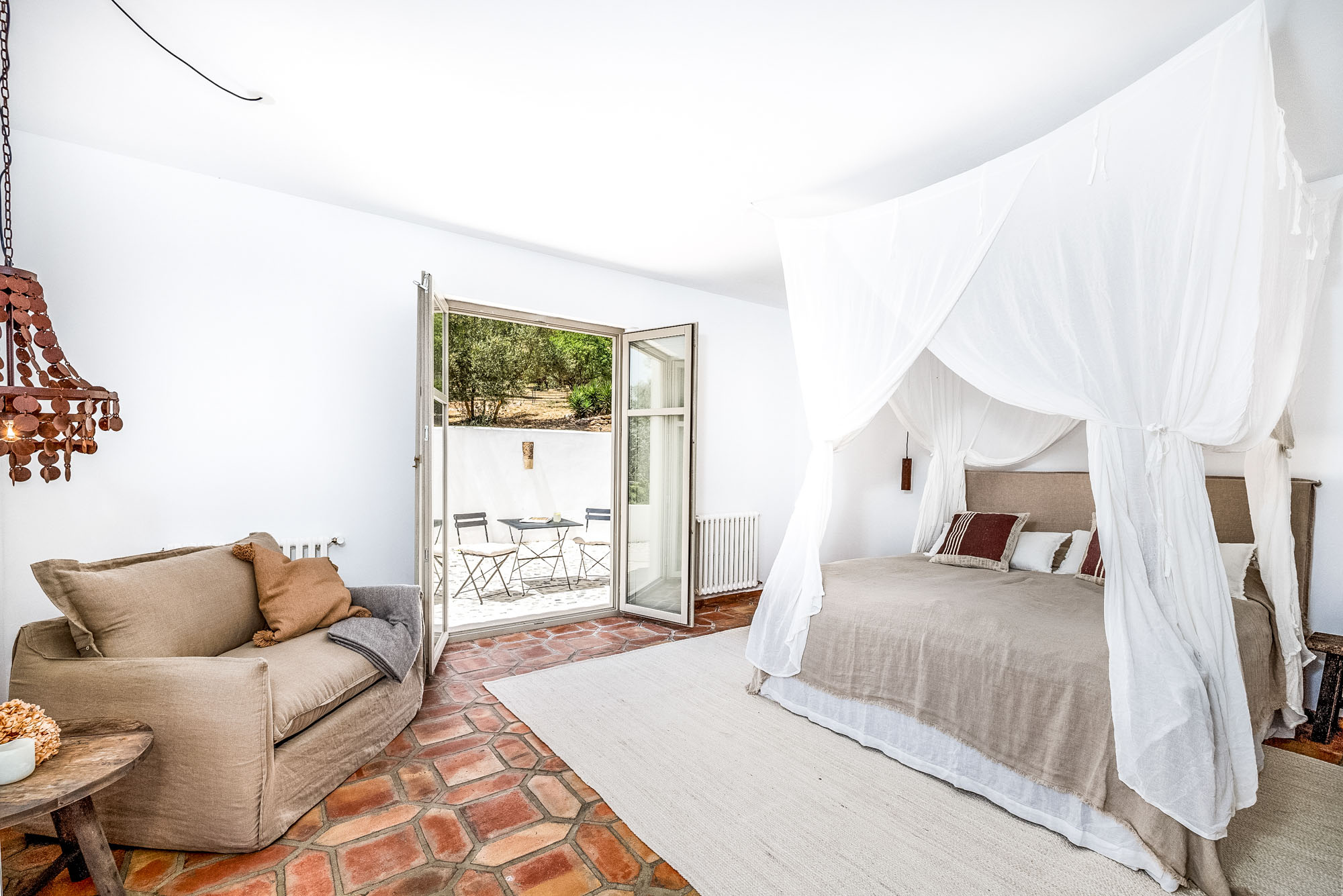 Bedrooms at Villa Sofia are a blend of gorgeous minimalism and statement design pieces, featuring sumptuous four poster beds, artisanal tables and woven rugs spread across original terracotta picket tiles which stay cool in summer and warm in winter. Larger groups will also have use of the additional guest house with small kitchenette for added convenience.