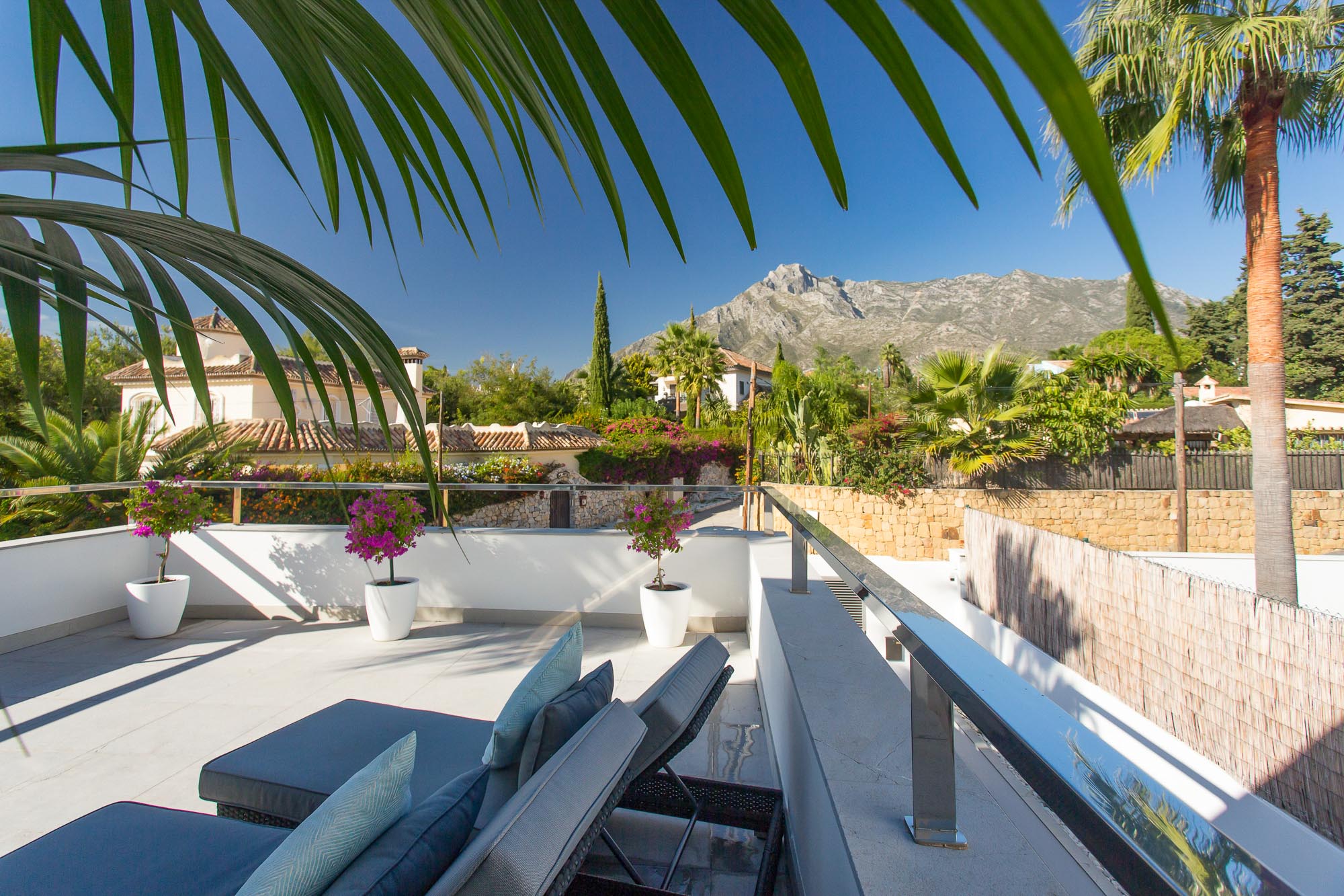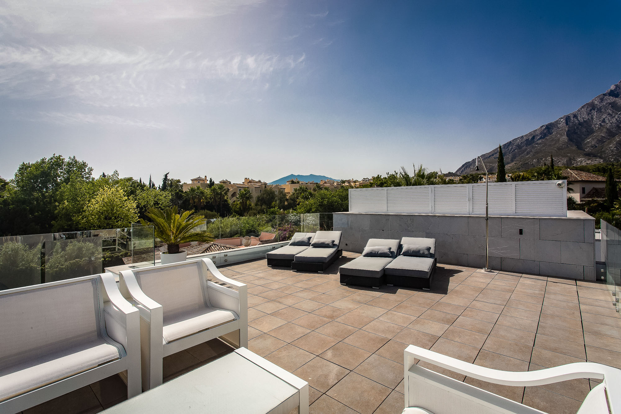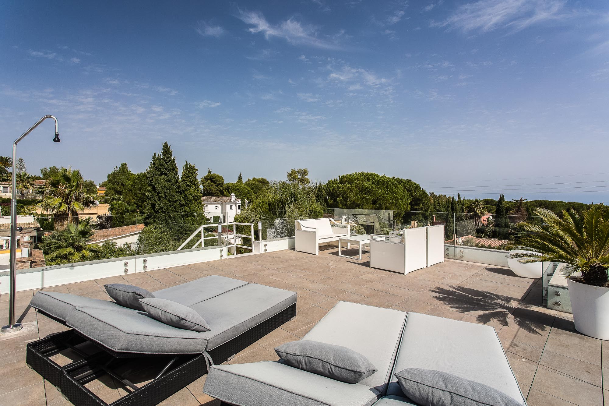 In addition there are three further bedrooms: one twin in neutral shades with a newly upgraded en suite shower room and private terrace overlooking La Concha mountain; and two more on the lower ground floor.