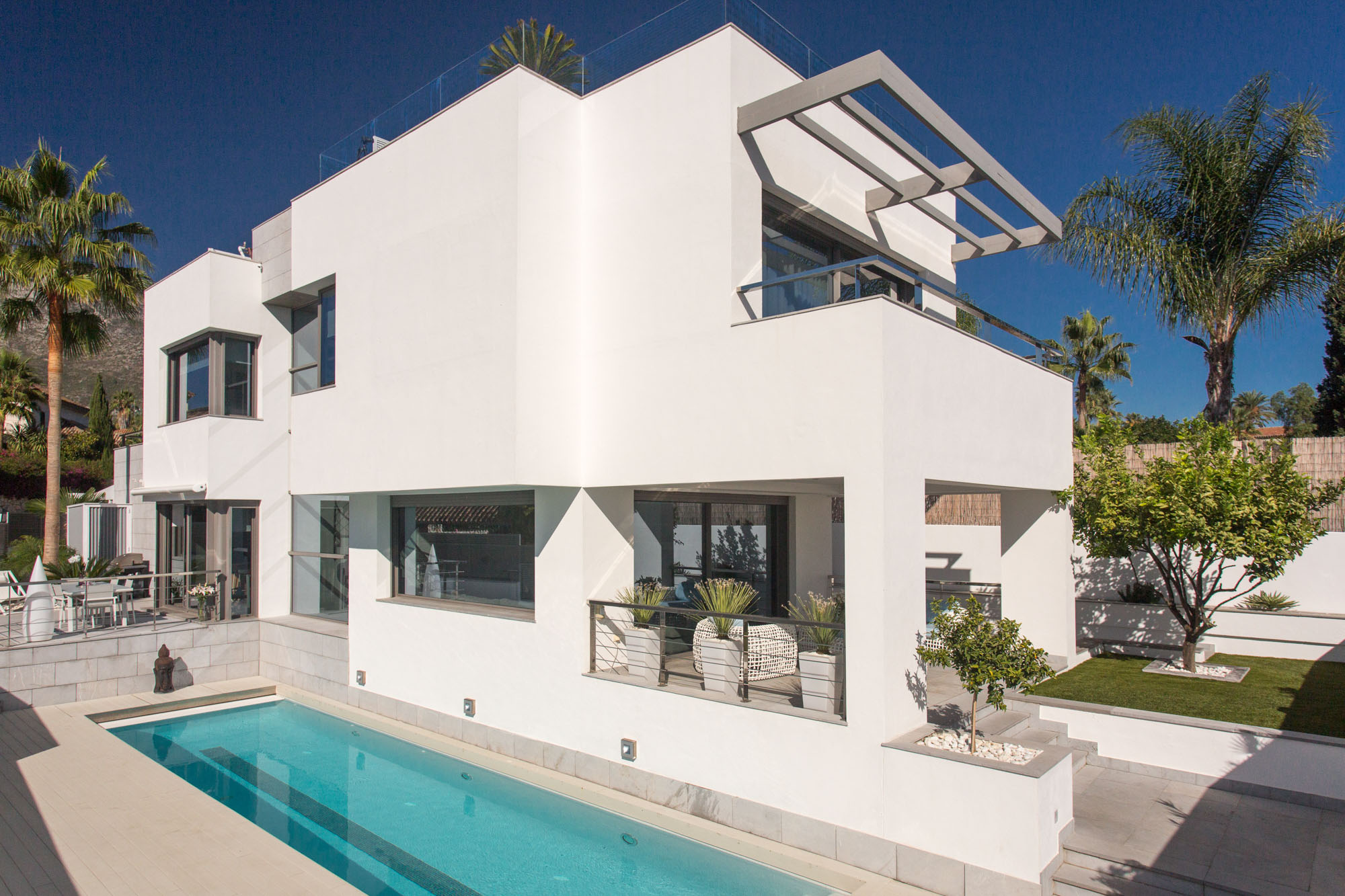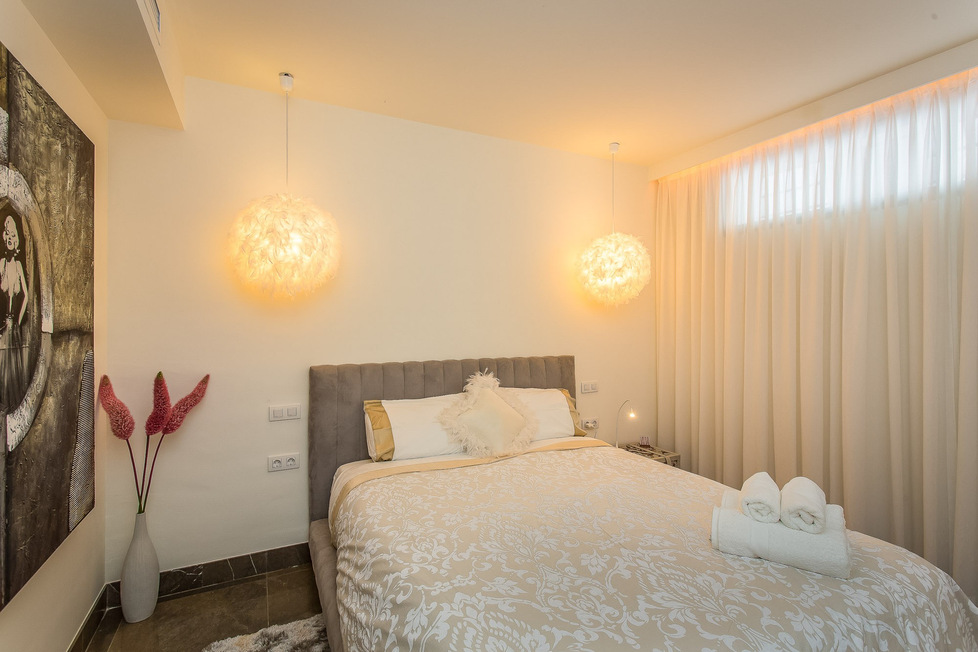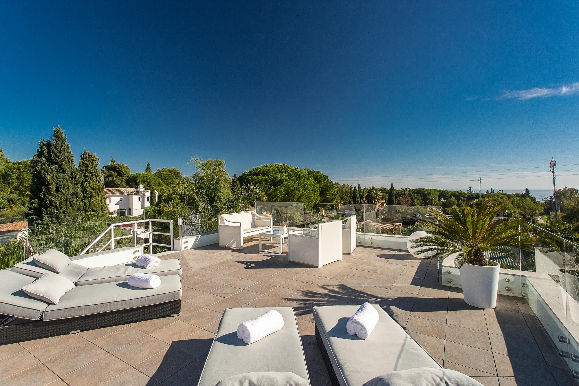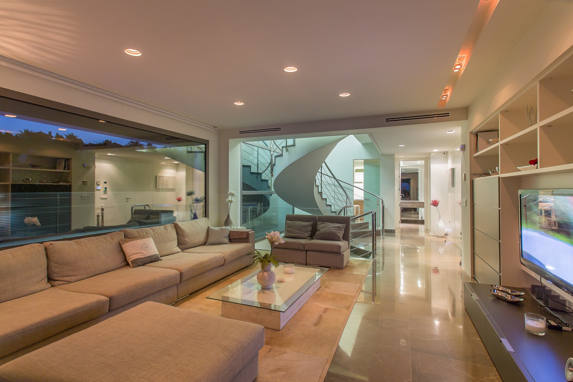 In addition there are three further bedrooms: one twin in neutral shades with a newly upgraded en suite shower room and private terrace overlooking La Concha mountain; and two more on the lower ground floor.