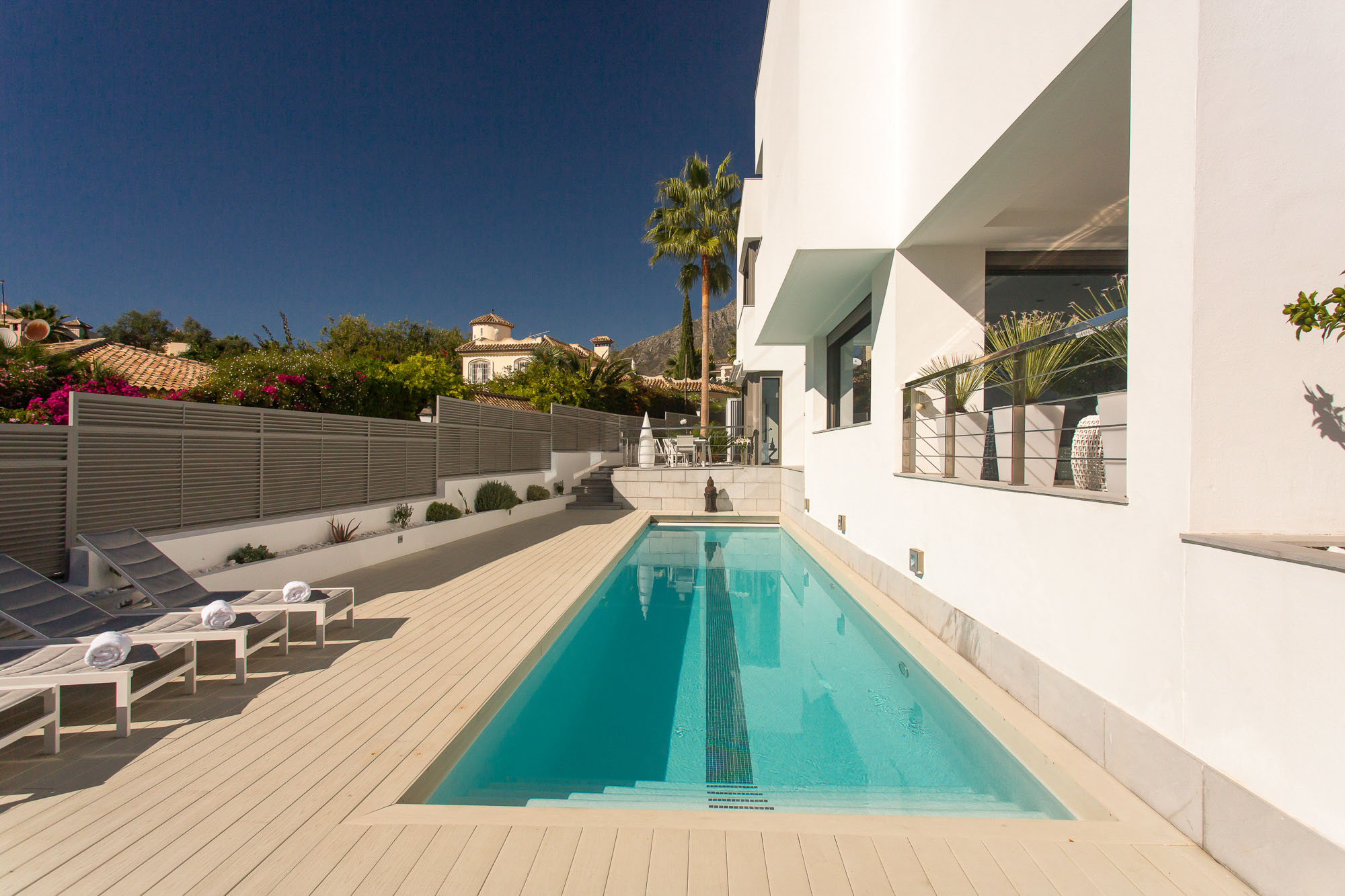 Not only is Villa Solise high on Scandi-style chic, but it also comes fully-loaded with tech: the living room has inviting sofas and a 65-inch wall-mounted TV with international channels, so you’ll always find something in your language. As you step out to the terrace and garden, even there you will find clean, modern lines. When night-time illumination lights up the outside space, this looks spectacular.