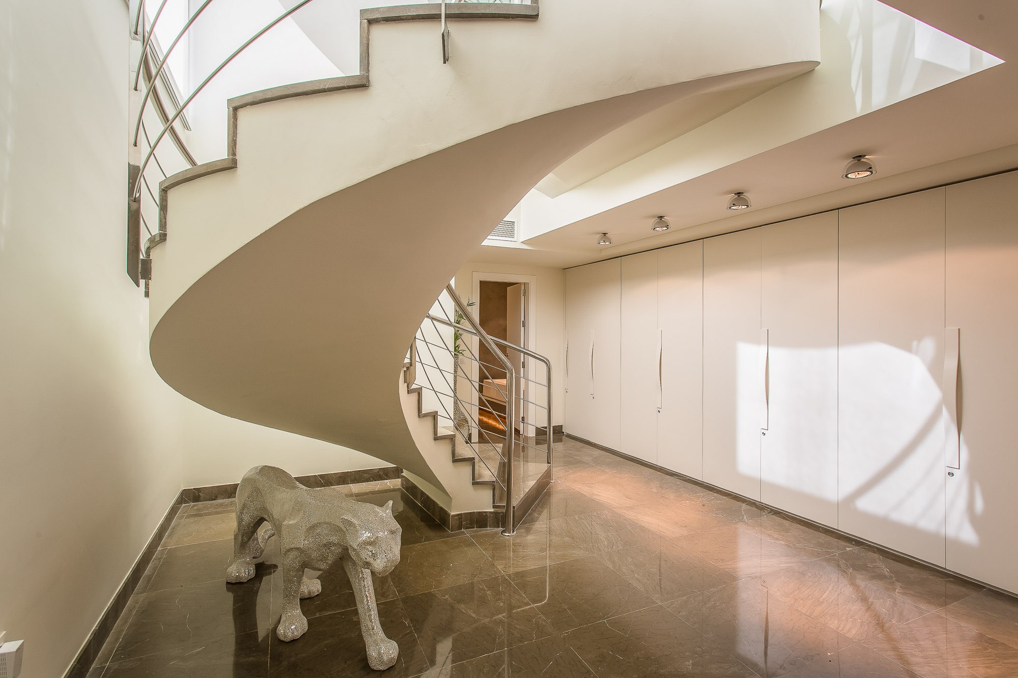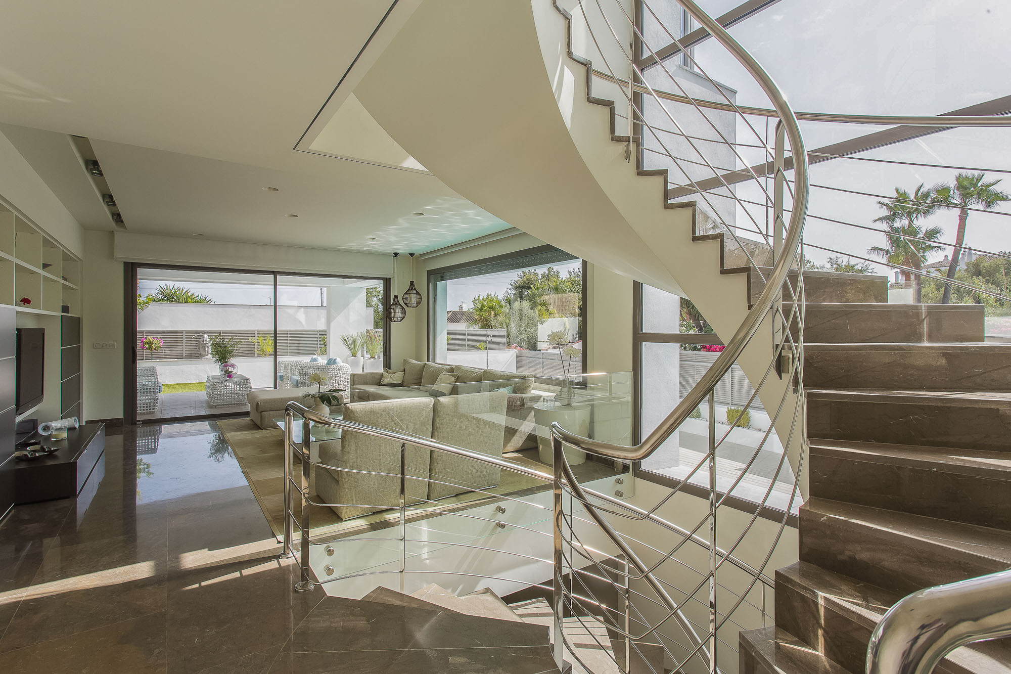 The first things to hit you in Villa Solise are the huge glass windows that let the sunlight come flooding in. The light dances on the cool grey marble floors, and a stunning spiral staircase takes centre-stage, a work of art in itself.