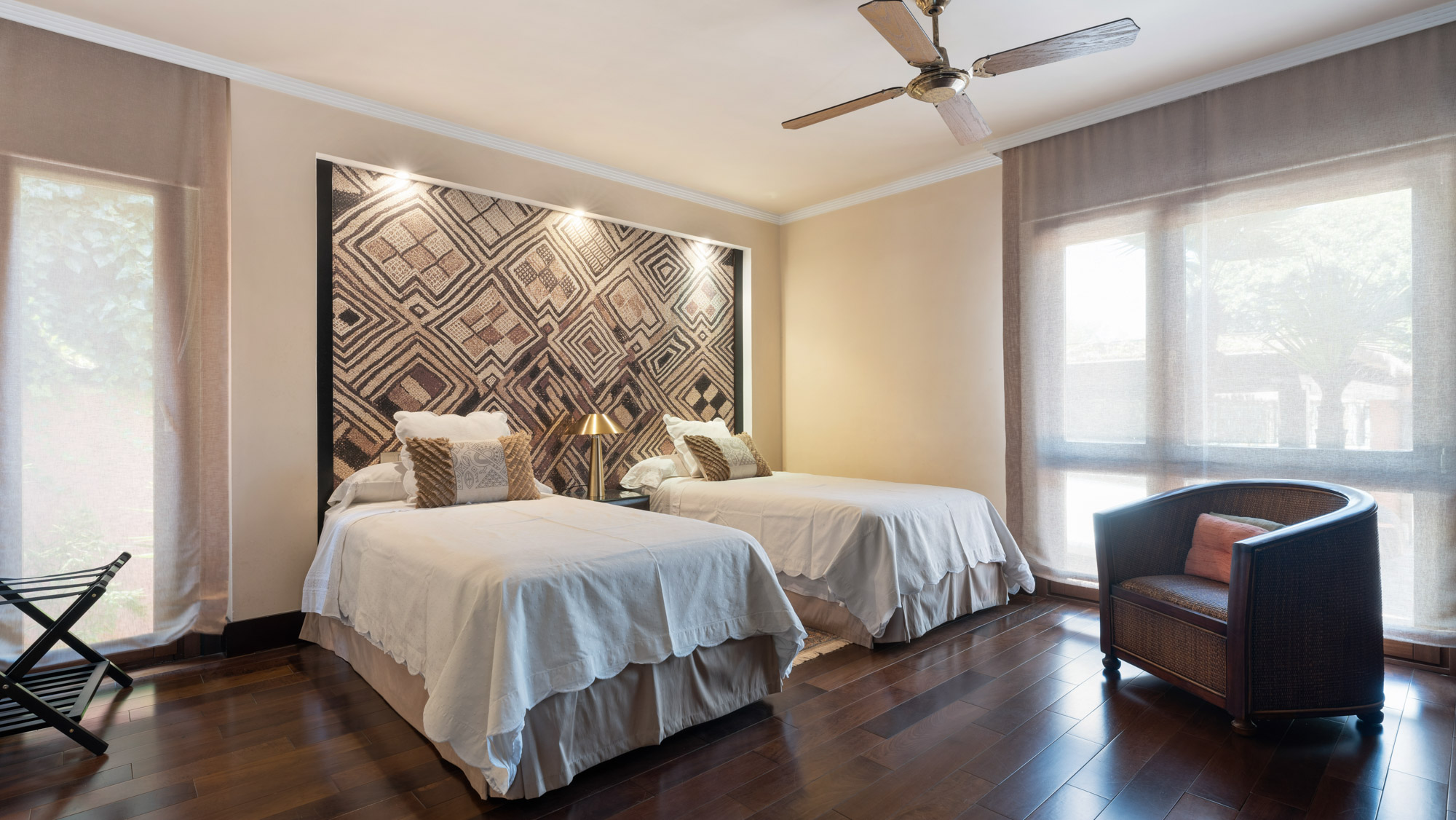 The owner’s love of art and travel is evident throughout the accommodation. Interiors inspired by travels to Bali, Africa and Japan, are united with exquisite art pieces, curio and objet d’art.