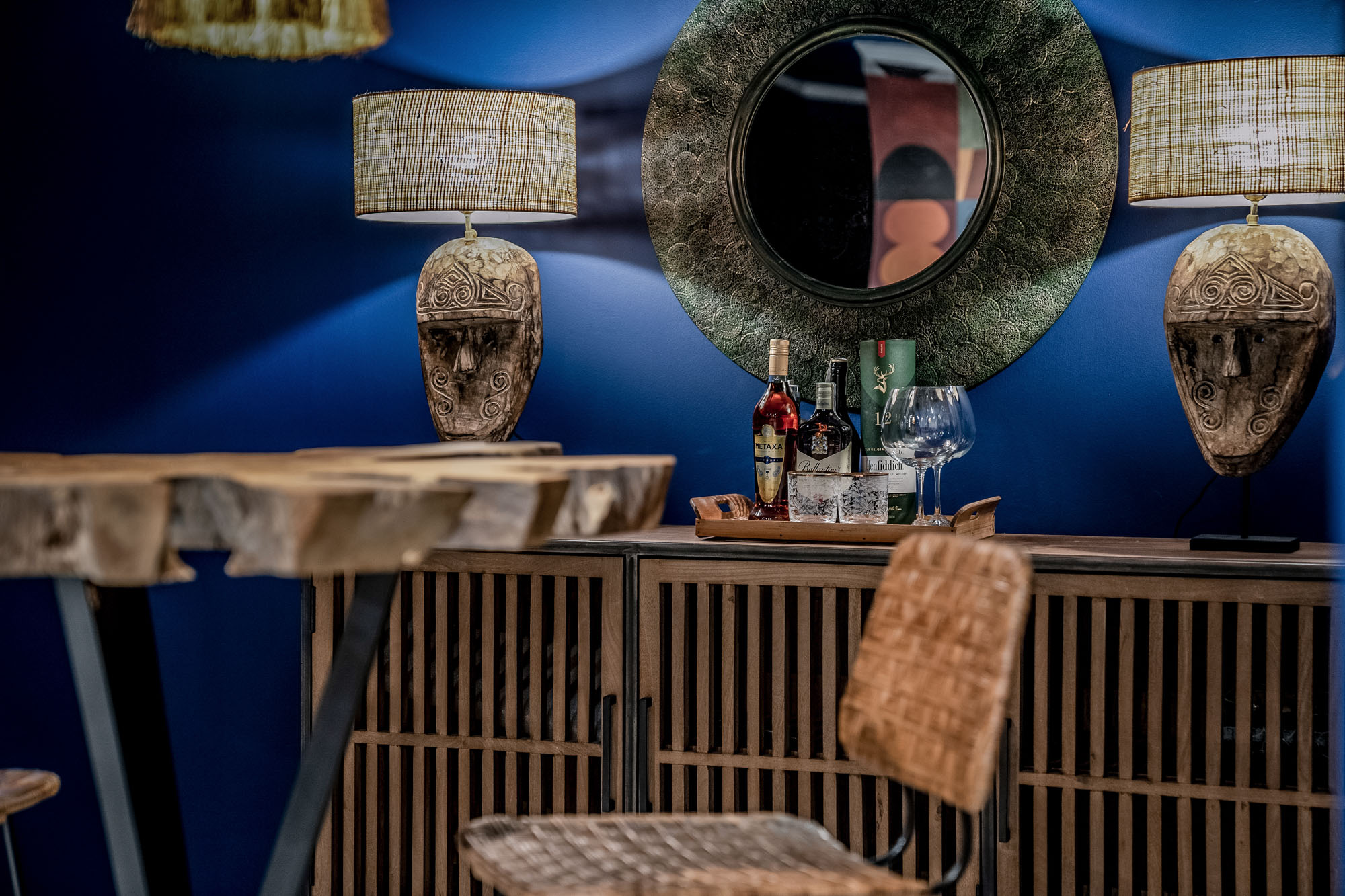 Behind the sitting room is a cocktail mixing table and a desk area, so guests can catch up with the office during their stay.