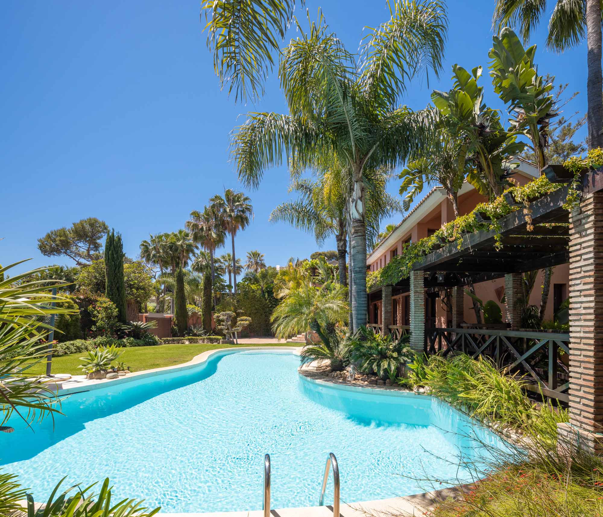 Stepping through the pretty courtyard entrance, you instantly sense that Villa Tenang has a gracious soul. This 8-bedroom beachside villa in Marbella offers a luxurious, peaceful retreat for 16 guests, and yet you are just minutes from the restaurants and beaches of the Golden Mile.